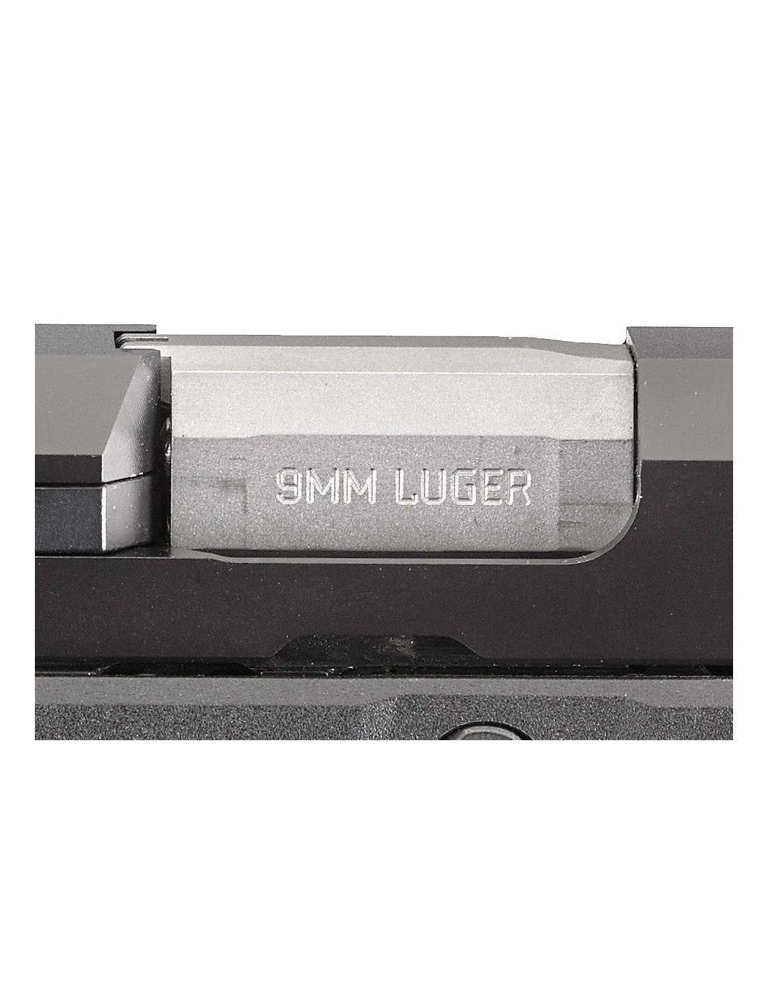 - Incluye: dos cargadores de acero revestidos de nickel-Teflon®; módulos de empuñadura pequeño, mediano y grande.