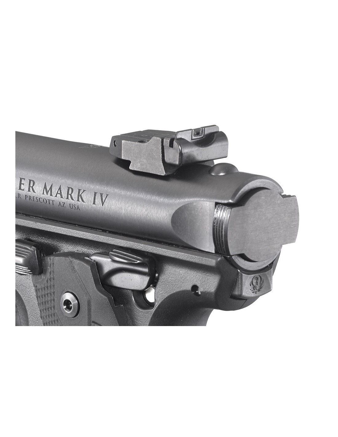 Las características específicas varían según el modelo, pero el legendario receptor de una sola pieza y la construcción del cerrojo cilíndrico interno siguen siendo los mismos. El diseño robusto garantiza una alineación permanente entre la mira y el cañón y un mayor potencial de precisión que los diseños convencionales de corredera móvil. La pistola Mark IV es compatible con una variedad de accesorios del mercado de accesorios Mark III, incluidas miras, bases de miras y cargadores. Esta pistola de fabricación estadounidense viene con dos cargadores de 10 balas.
