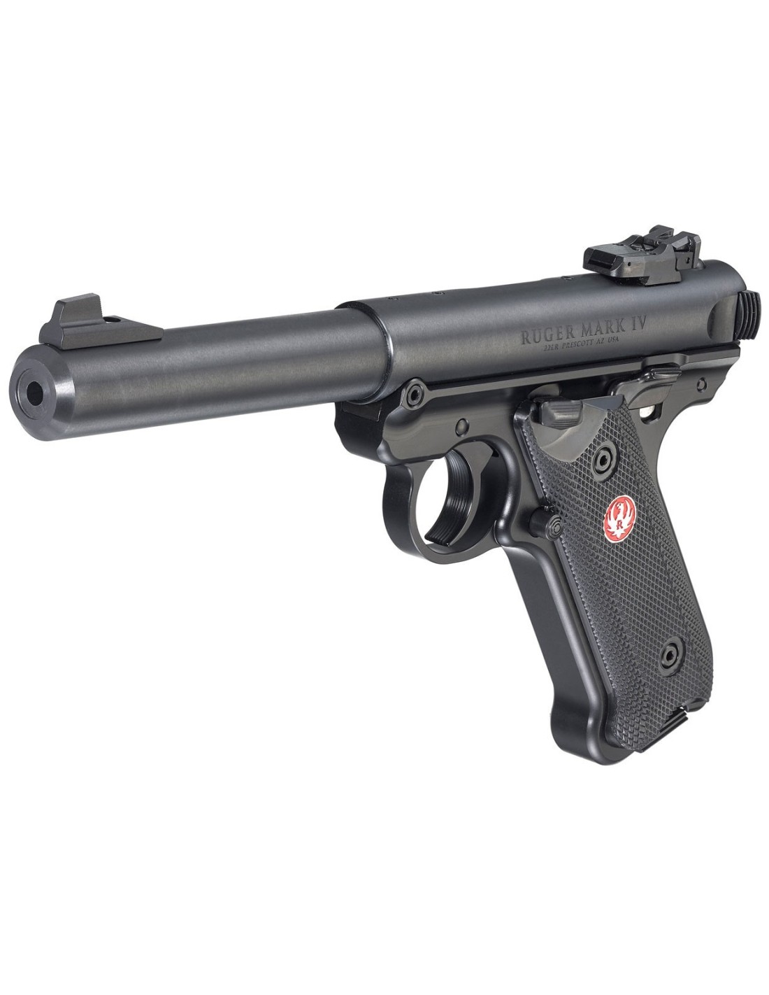 Las características específicas varían según el modelo, pero el legendario receptor de una sola pieza y la construcción del cerrojo cilíndrico interno siguen siendo los mismos. El diseño robusto garantiza una alineación permanente entre la mira y el cañón y un mayor potencial de precisión que los diseños convencionales de corredera móvil. La pistola Mark IV es compatible con una variedad de accesorios del mercado de accesorios Mark III, incluidas miras, bases de miras y cargadores. Esta pistola de fabricación estadounidense viene con dos cargadores de 10 balas.