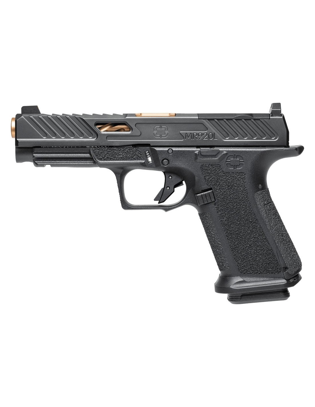 La MR920 cuenta con el innovador sistema de correa trasera NPOA de Shadow Systems, que cambia fundamentalmente el ángulo de agarre del arma para encontrar el punto natural de puntería del tirador. La empuñadura extendida y una muesca agresiva en el protector del gatillo brindan un control de retroceso inigualable, lo que permite disparos de repetición rápidos y precisos. La textura de agarre envolvente del armazón es lo suficientemente agresiva para mantener el arma firmemente.