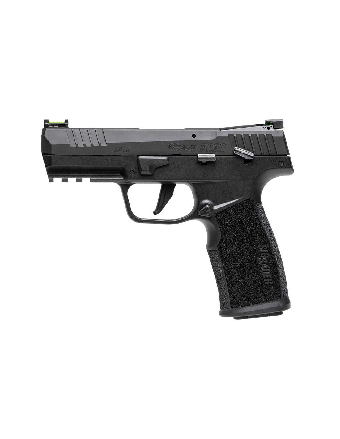 La P322 también viene con un adaptador de cañón roscado listo para supresor, y con sus controles ambidiestros, gatillos planos y curvos intercambiables, y miras delantera y trasera de fibra óptica, la nueva P322 es la pistola .22 más avanzada y de mayor capacidad en su clase.