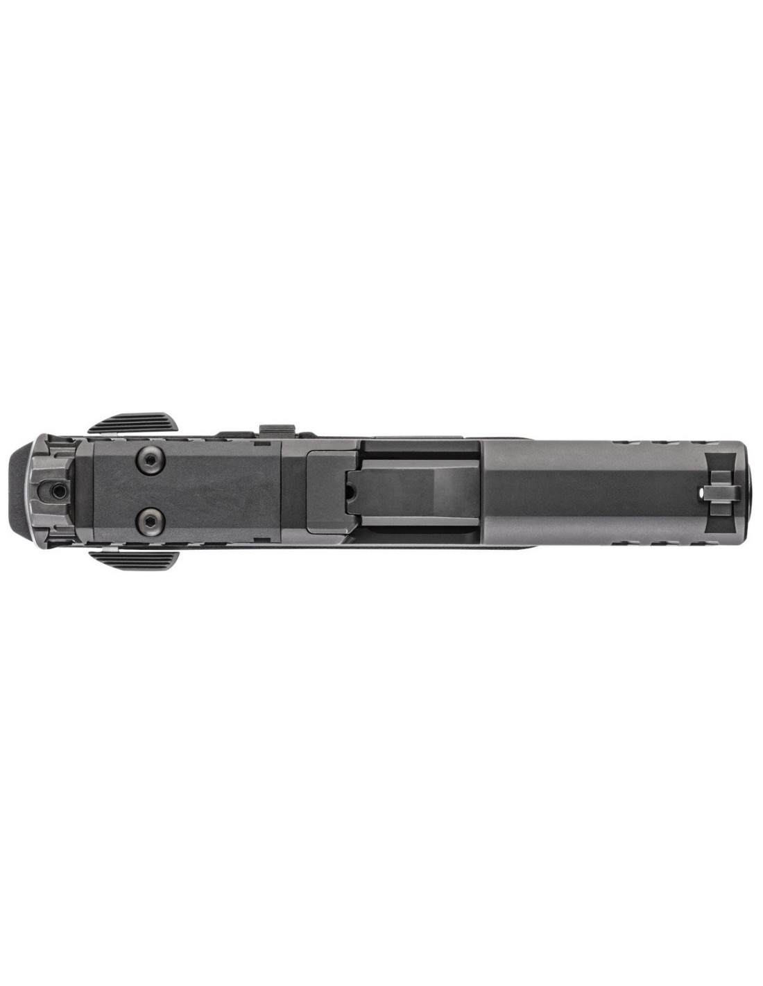 La EQUALIZER™ cuenta con un disparador de acción única de salida limpia y sin arrastres con una recuperación (reset) rápida, notoria y audible, perfecto para disparos repetitivos. Los elementos de puntería (alza y mira) son fáciles de intercambiar para satisfacer una amplia variedad de necesidades y en la parte inferior del armazón incluye carril estilo picatinny para montar linternas o láseres para cualquier escenario de defensa. Un nuevo patrón de corte óptico permite al usuario montar la óptica que elija para mejorar la precisión y el cañón de 3.675” brinda una distancia entre miras más amplia para una mayor precisión. La pistola también presenta una nueva textura y patrón de agarre diseñados para brindarle más control al disparar y más comodidad al transportarla.
