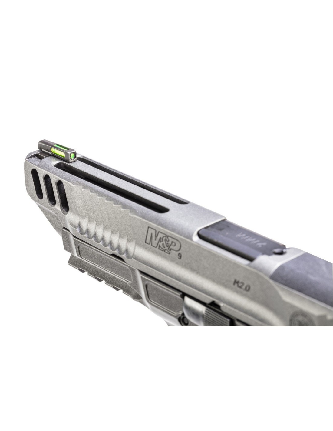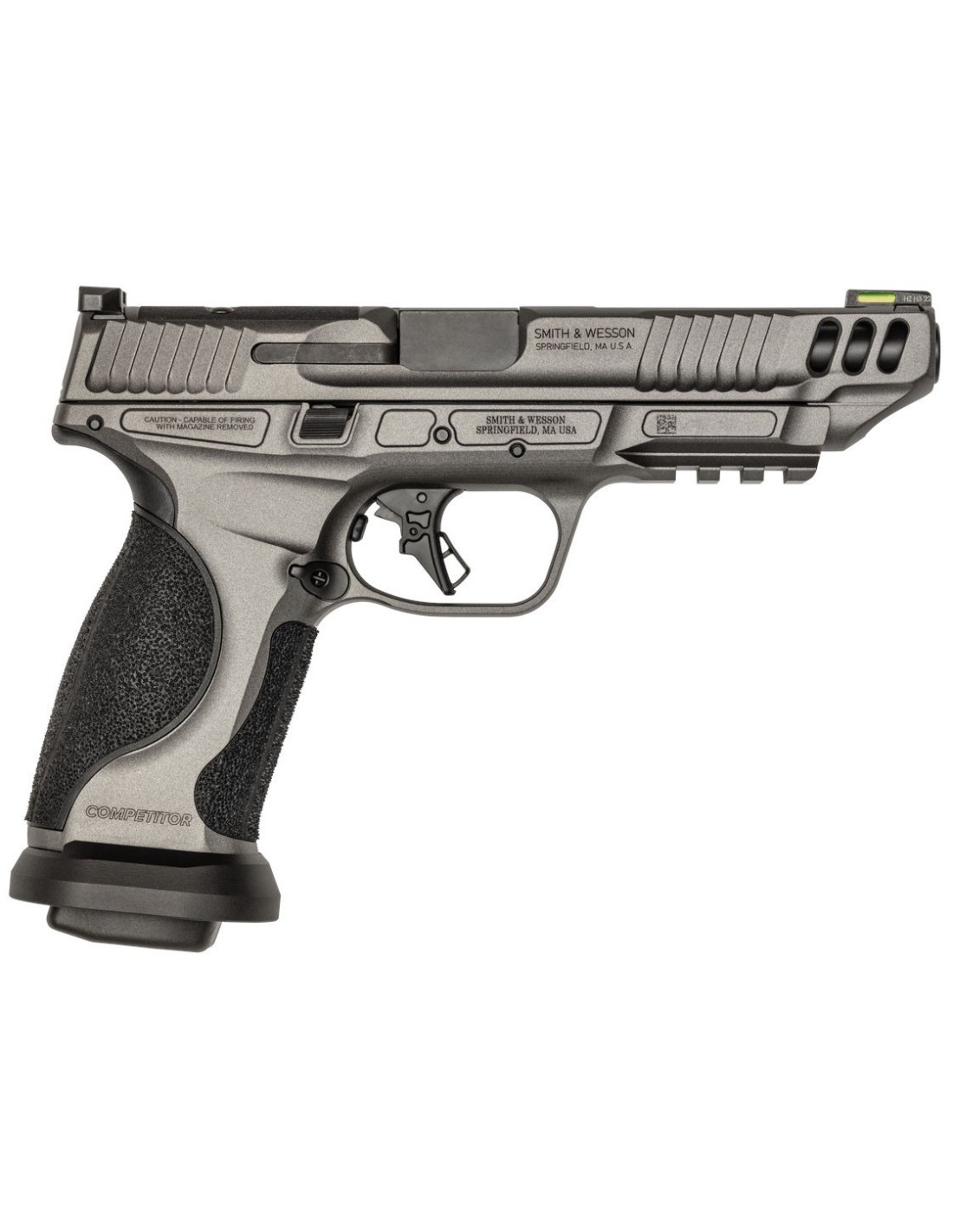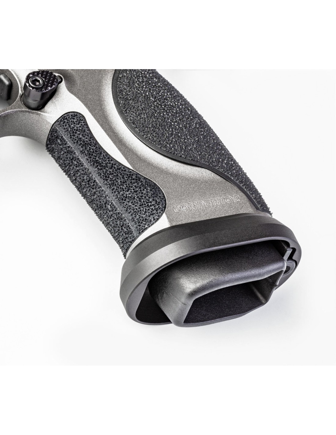 Diseñada para la competición desde el primer momento, esta pistola de 9mm Pb. con armazón metálico está diseñada para dar ventaja a los tiradores competitivos. La M&P9 M2.0 PC Competitor viene con un cañón de 5”, tiene un disparador mejorado de cara plana con salida limpia y sin arrastres, con una recuperación (reset) rápida, notoria y audible, e incluye un cargador acampanado para una recarga rápida y eficiente.