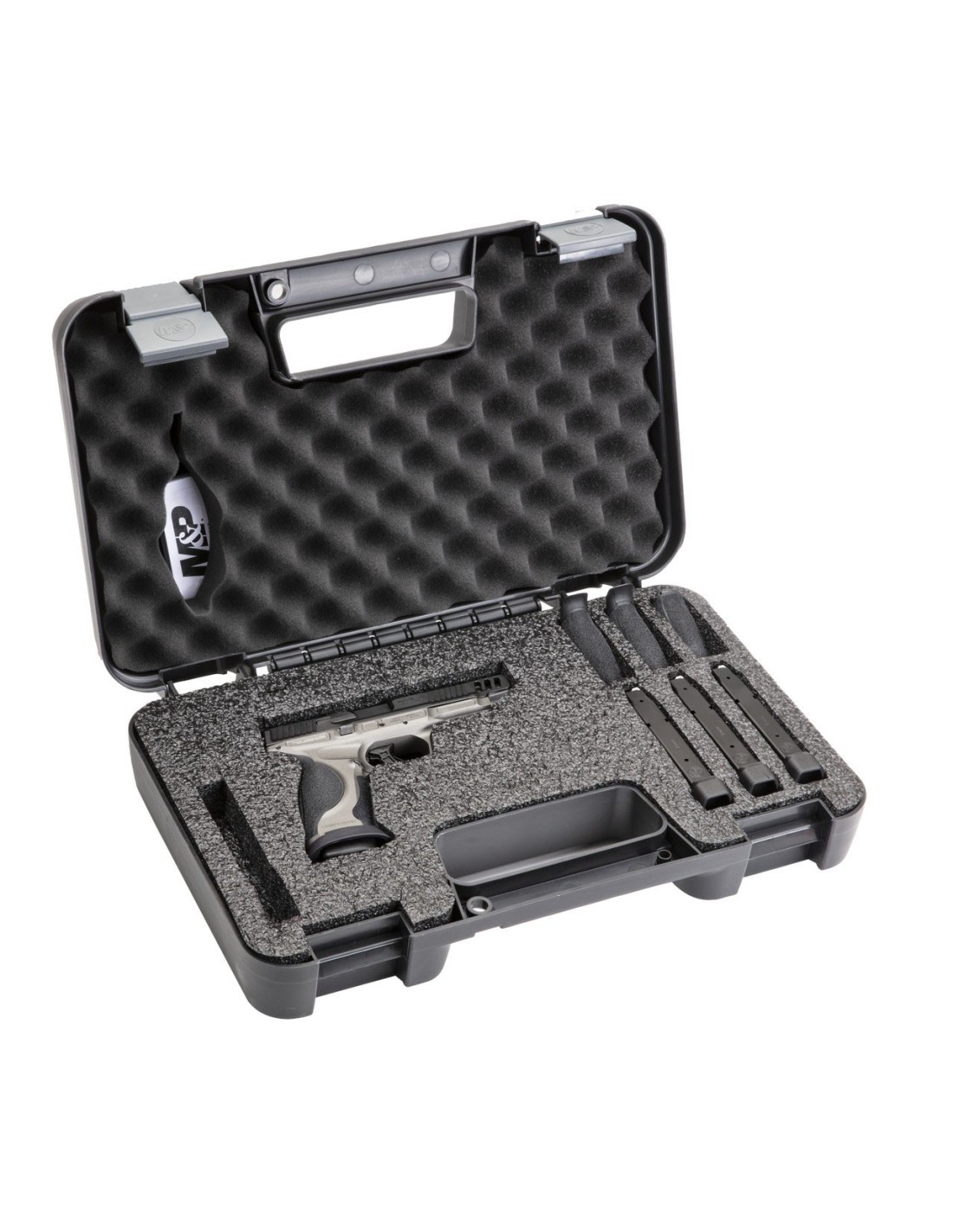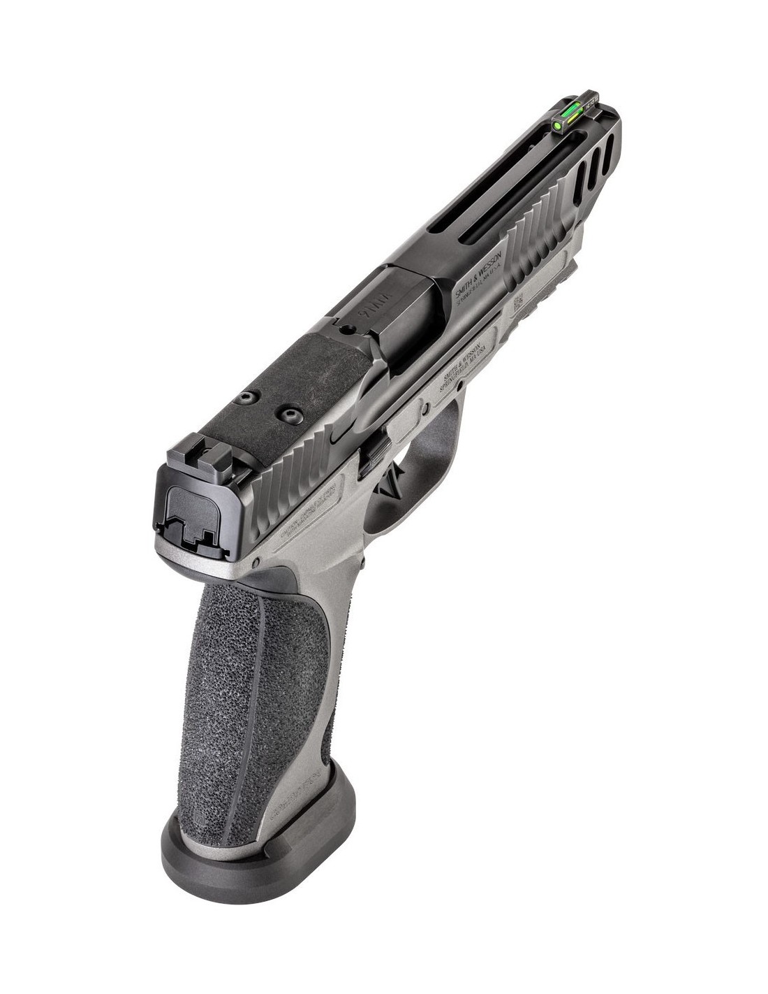 Diseñada para la competición desde el primer momento, esta pistola de 9mm Pb. con armazón metálico está diseñada para dar ventaja a los tiradores competitivos. La M&P9 M2.0 PC Competitor viene con un cañón de 5”, tiene un disparador mejorado de cara plana con salida limpia y sin arrastres, con una recuperación (reset) rápida, notoria y audible, e incluye un cargador acampanado para una recarga rápida y eficiente.