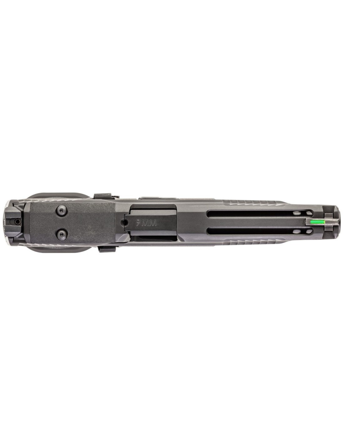 Con una nueva apariencia, los agresivos cortes de ventilación en la parte superior y los lados de la corredera reducen en última instancia la cantidad de peso frente a la recámara y, a cambio, ayudan a mejorar el punto de equilibrio del retroceso. Viene con sistema integrado para montaje de óptica, incluye una mira frontal de fibra óptica y una mira trasera dentada oscurecida. Trae botón de liberación del cargador de gran tamaño que es reversible para usuarios diestros y zurdos y se envía con un total de cuatro cargadores y maletín de transporte.