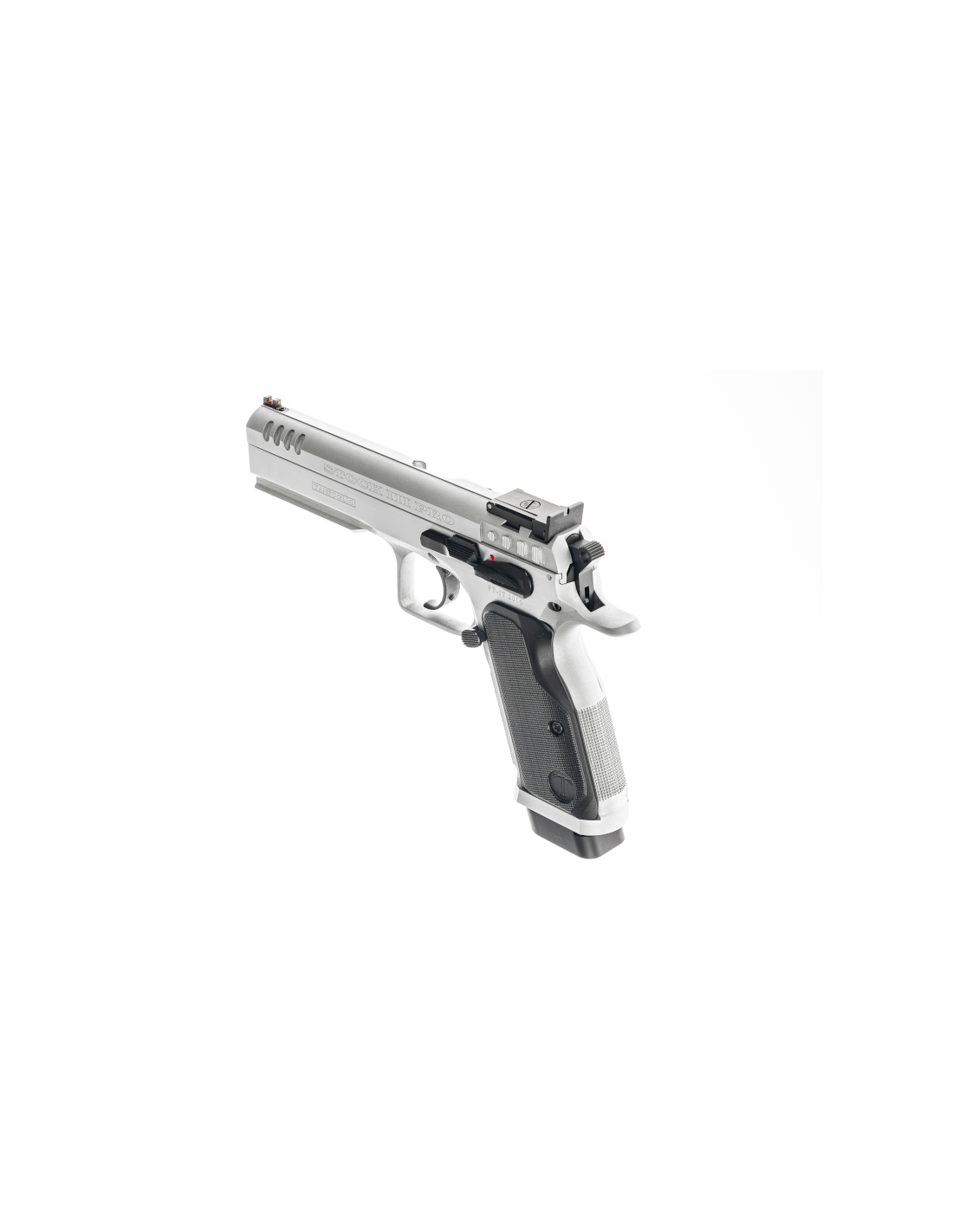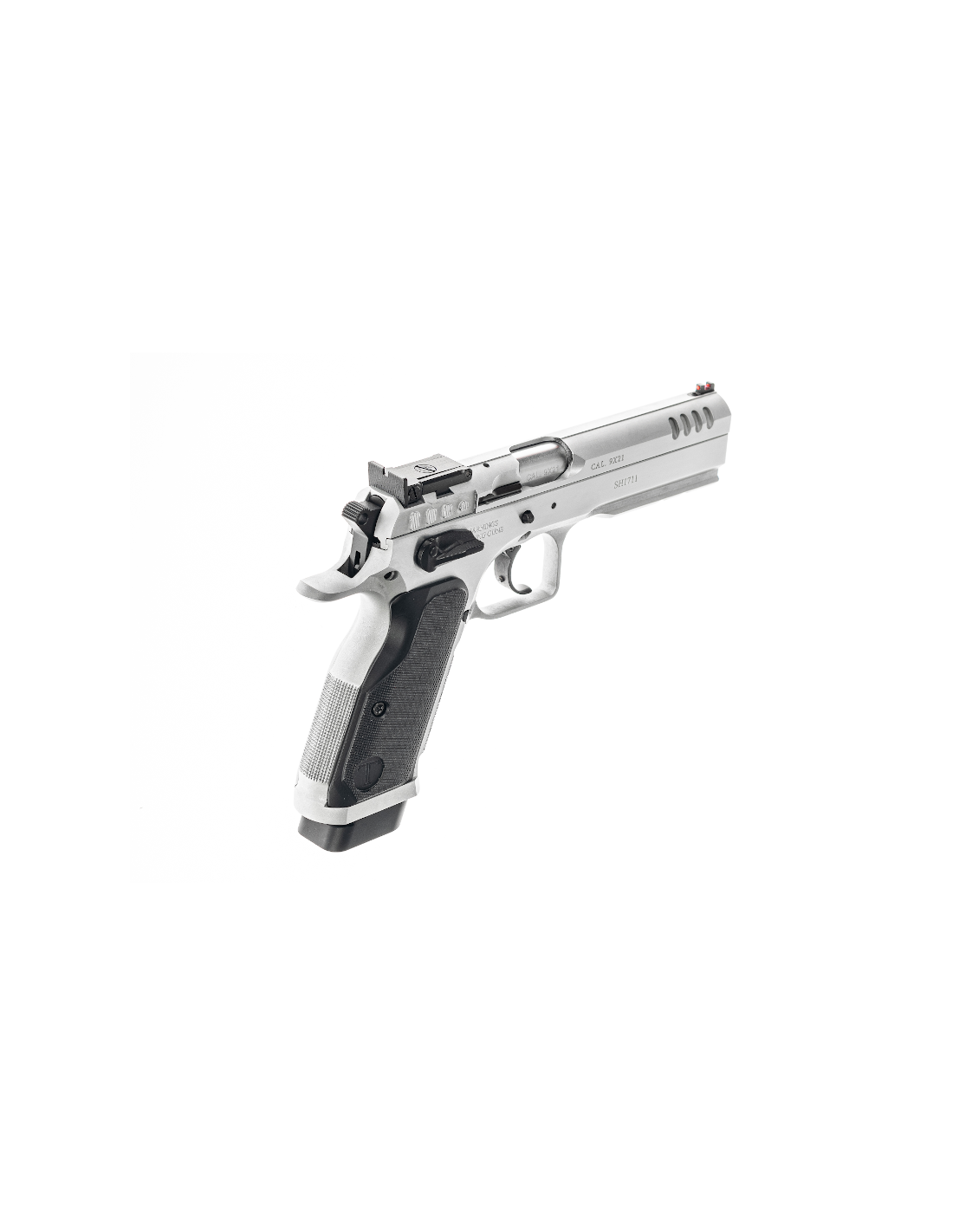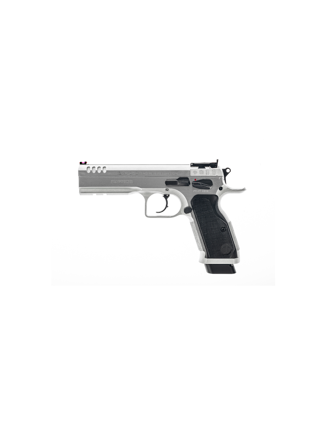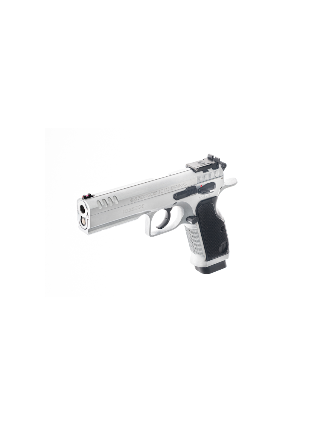La Tanfoglio Stock III Pro 9 mm es la evolución competitiva del modelo Stock III, diseñada para alto rendimiento en competición. Incorpora cañón bull-barrel poligonal de 121 mm, mejillas de aluminio, acabado cromado y un gatillo de nueva configuración de alto rendimiento. Equilibrio entre precisión, control y fiabilidad con un peso de 1.280 g.