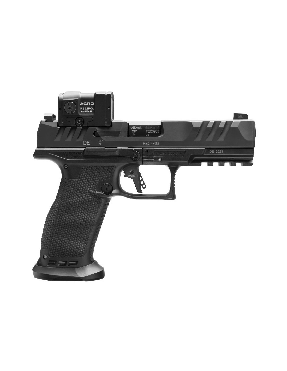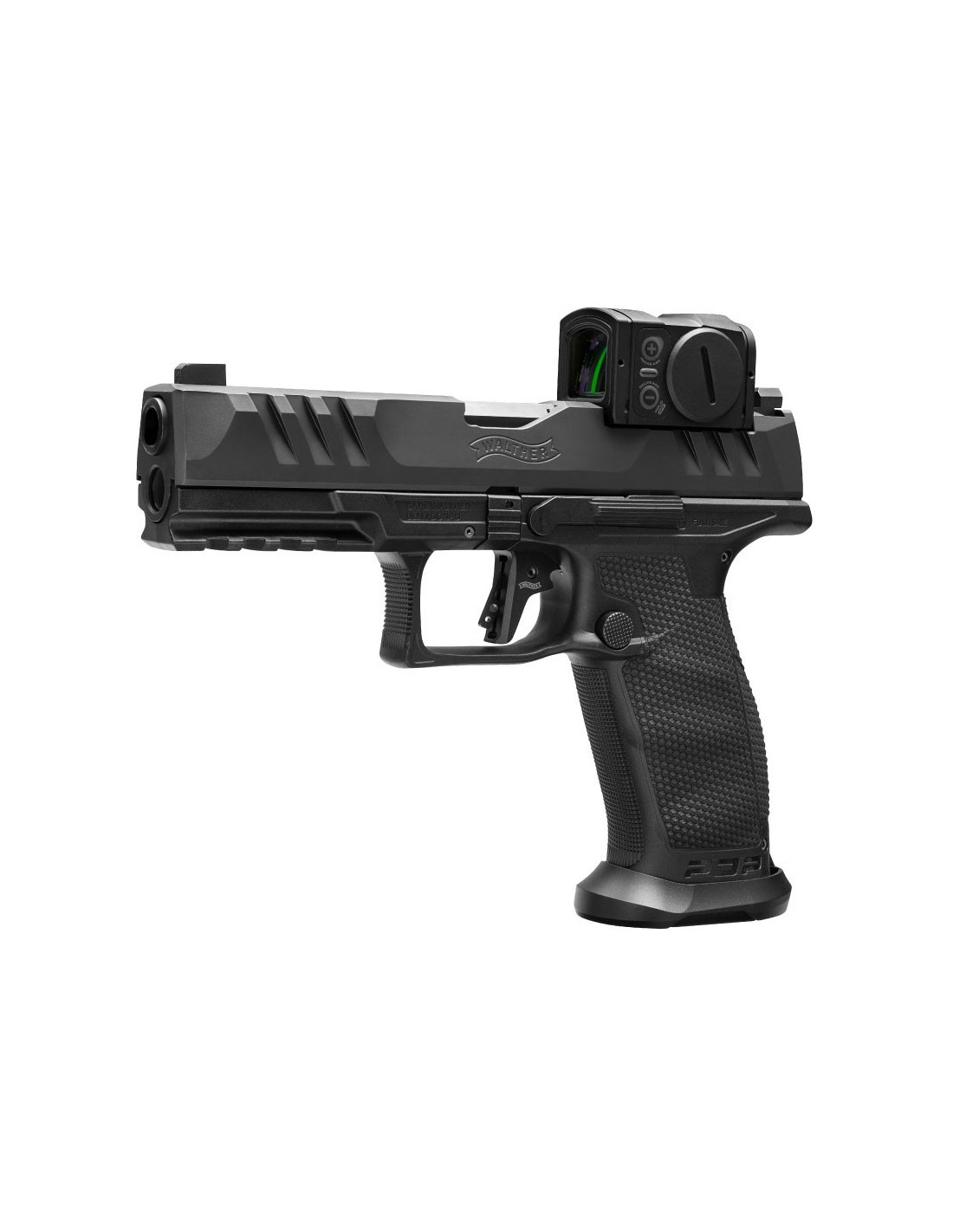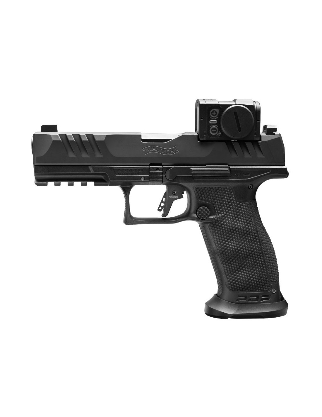 Todas las demás ventajas de la Walther PDP, como el innovador disparador PDT, los fresados en la corredera SuperTerrain o la textura Performance Duty, son componentes fundamentales de la PDP Match. Y por supuesto, la ergonomía RDS diseñada para hacer que el montaje de las ópticas de punto rojo más populares sea de forma más fácil.