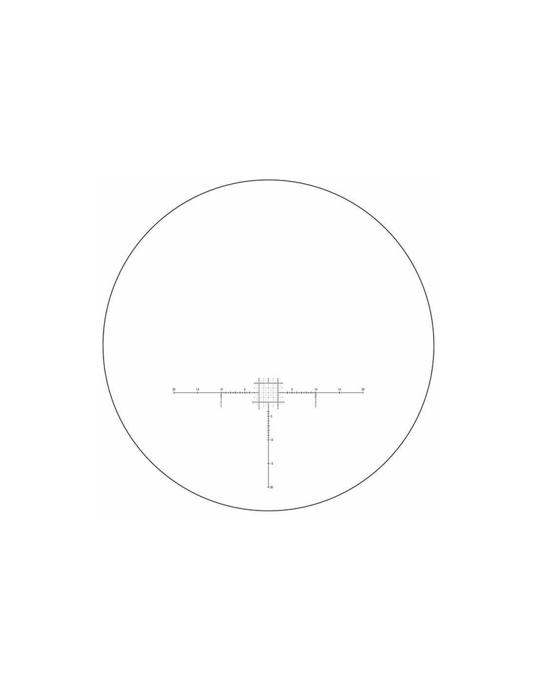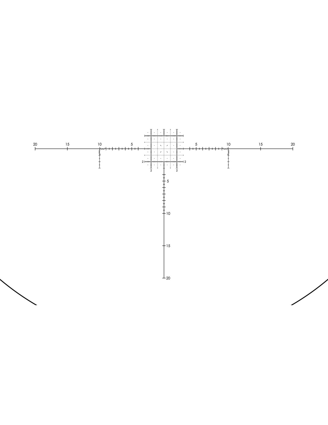 - Retícula Shot-Call MRAD. Proporciona marcas hash de 0.5 MIL para medición de rango y corrección de disparo. Posee su propio ajuste de enfoque.
