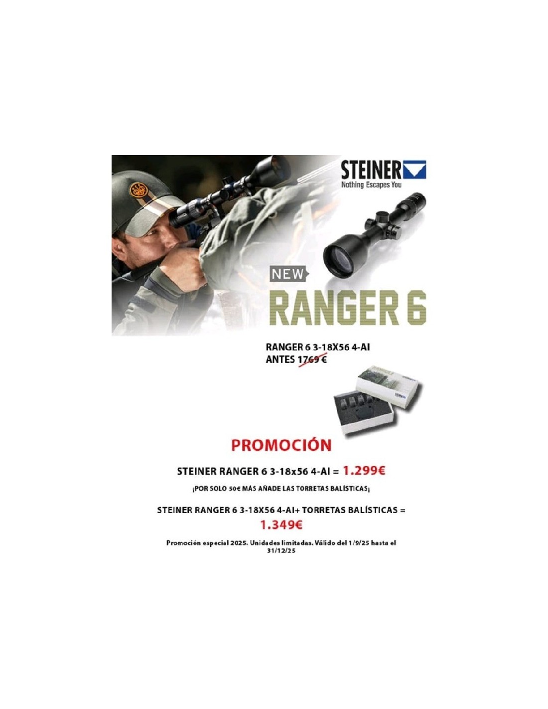 En stock -20,00 € Óptica Visor Vector Optics Grizzly 3-12x56 SFp HUN-SCOM-09 179,00 € 199,00 € El telescopio GRIZZLY 3-12x56 de Vector Optics ofrece precisión y versatilidad con ampliación variable, lentes objetivas de 56 mm y retícula grabada alemana #4. Su construcción robusta en aluminio aeronáutico y resistencia a golpes y agua lo hacen ideal para condiciones extremas. COMPRAR