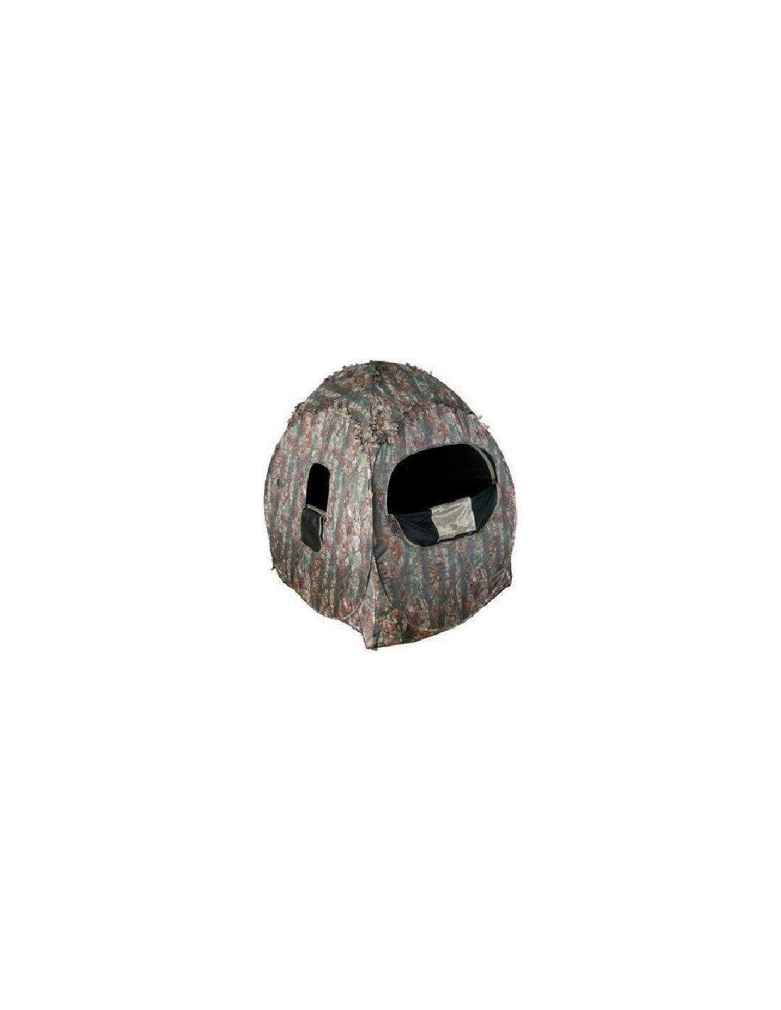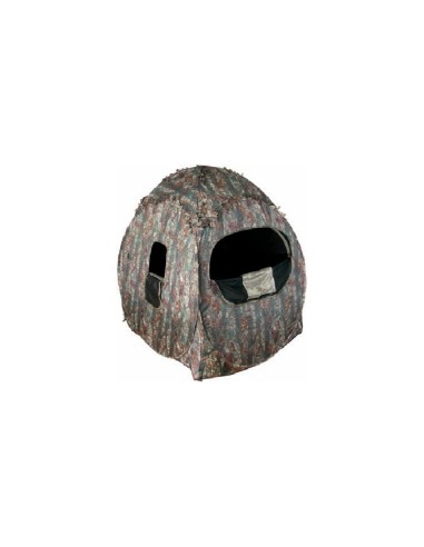 Puesto de camuflaje tipo cúpula con 7 ventanas y sistema de montaje instantáneo por estructura de muelles. Incluye bolsa-mochila.