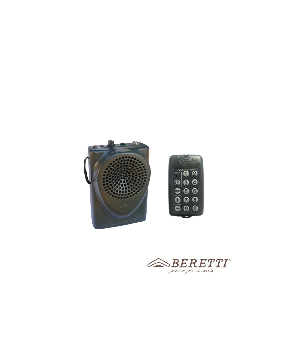 El Reproductor Digital Beretti C36T, diseñado para atraer alondras y aves acuáticas, incluye una tarjeta de memoria estándar con 16 cantos intercambiables y mando a distancia para controlar hasta dos dispositivos con un alcance de hasta 120 metros. Compacto, ligero y compatible con batería externa, es una herramienta versátil y de calidad profesional, ideal para los apasionados de la caza y observación de aves. Fabricado en Italia con garantía de dos años.