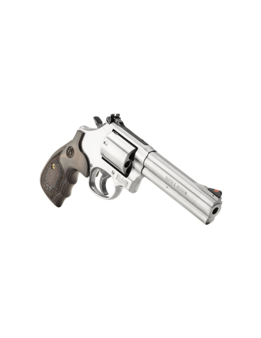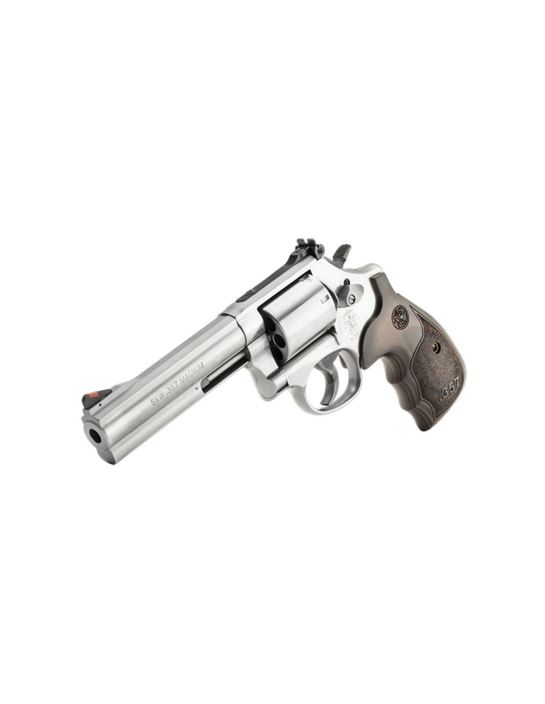 Un revolver “imprescindible"" para un coleccionista, la serie Magnum ""357"" de Smith & Wesson presenta el modelo 686 Plus Deluxe con empuñaduras de madera personalizadas con el anagrama ""357"", tambor sin estrías y en una longitud de cañón de 5”. Con capacidad para 7 cartuchos del calibre .357 Magnum, el modelo 686 Plus Deluxe de acero inoxidable ofrece protección compacta y potente, tiro deportivo y recolección, todo en uno.