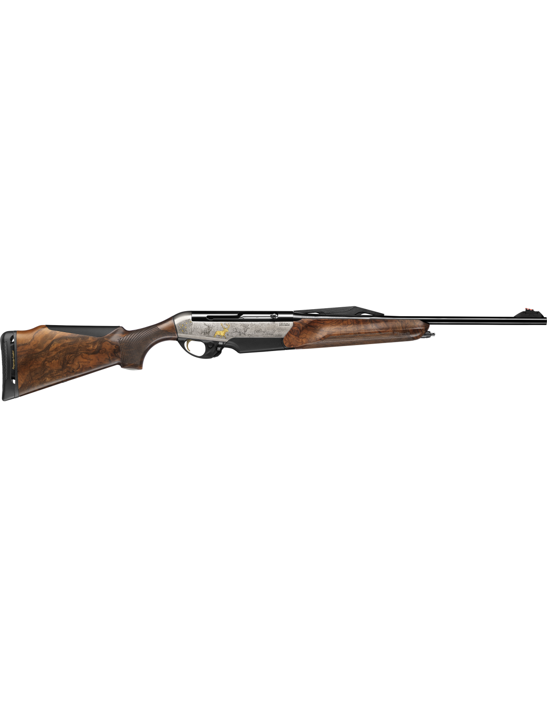 Endurance BE.S.T. de edición limitada une lo mejor de la fiabilidad Benelli en un solo e irrepetible rifle de serie limitada. El grabado se inspira en los conceptos de tiempo, percepción y movimiento, que tienden a fundirse y a perseguirse en un juego de perspectiva y profundidad, que confieren al grabado una percepción dinámica. En el lado derecho destaca un ciervo en primer plano, que aparece majestuoso entre la vegetación invernal y en perfecta simetría en el otro lado de la carcasa, encontramos la energía pura de un jabalí, que salta hacia delante entre la vegetación. Particulares dorados exaltan la elegancia y el valor de este rifle de colección. Tecnología, belleza y fiabilidad Benelli con el exclusivo y patentado tratamiento BE.S.T.