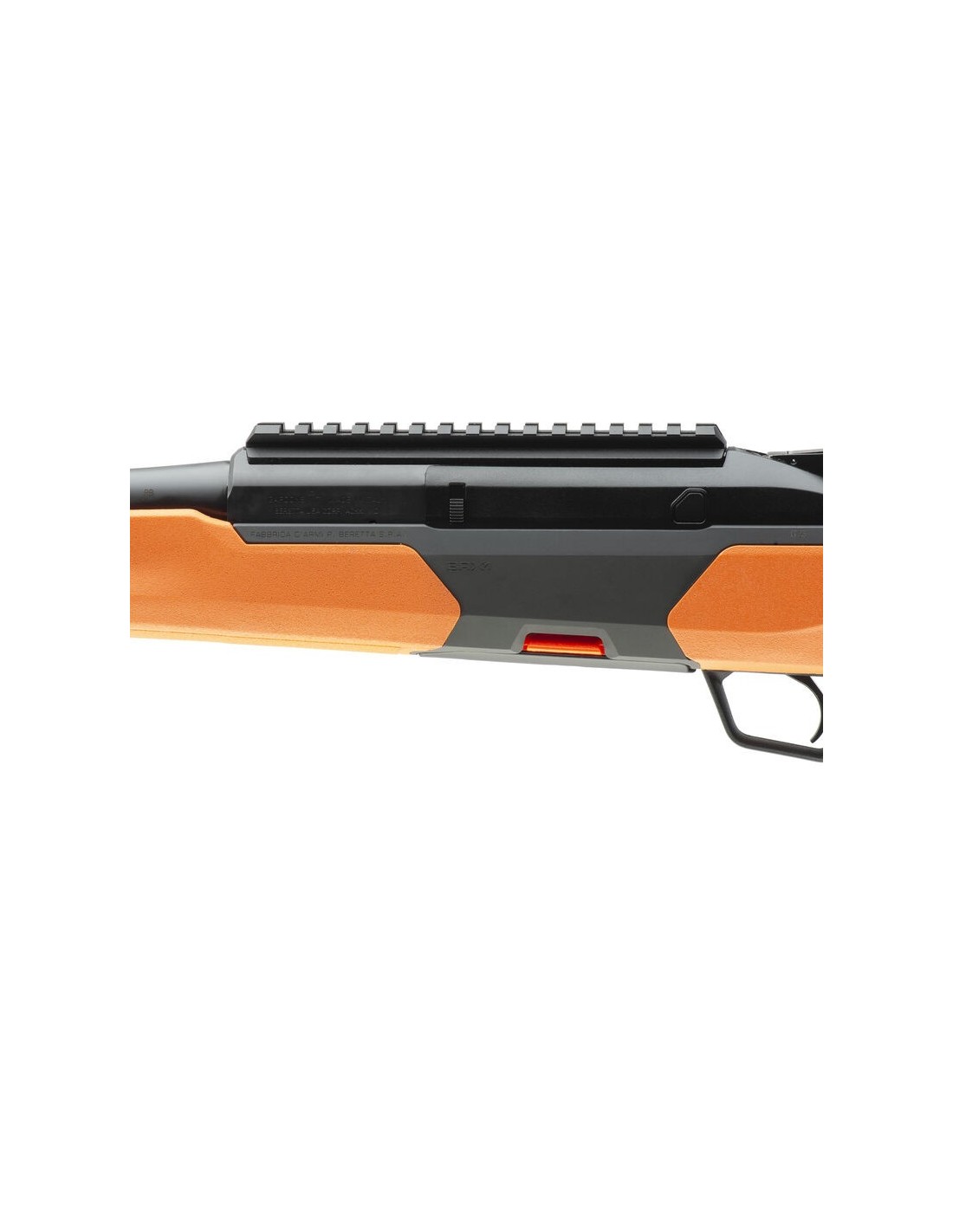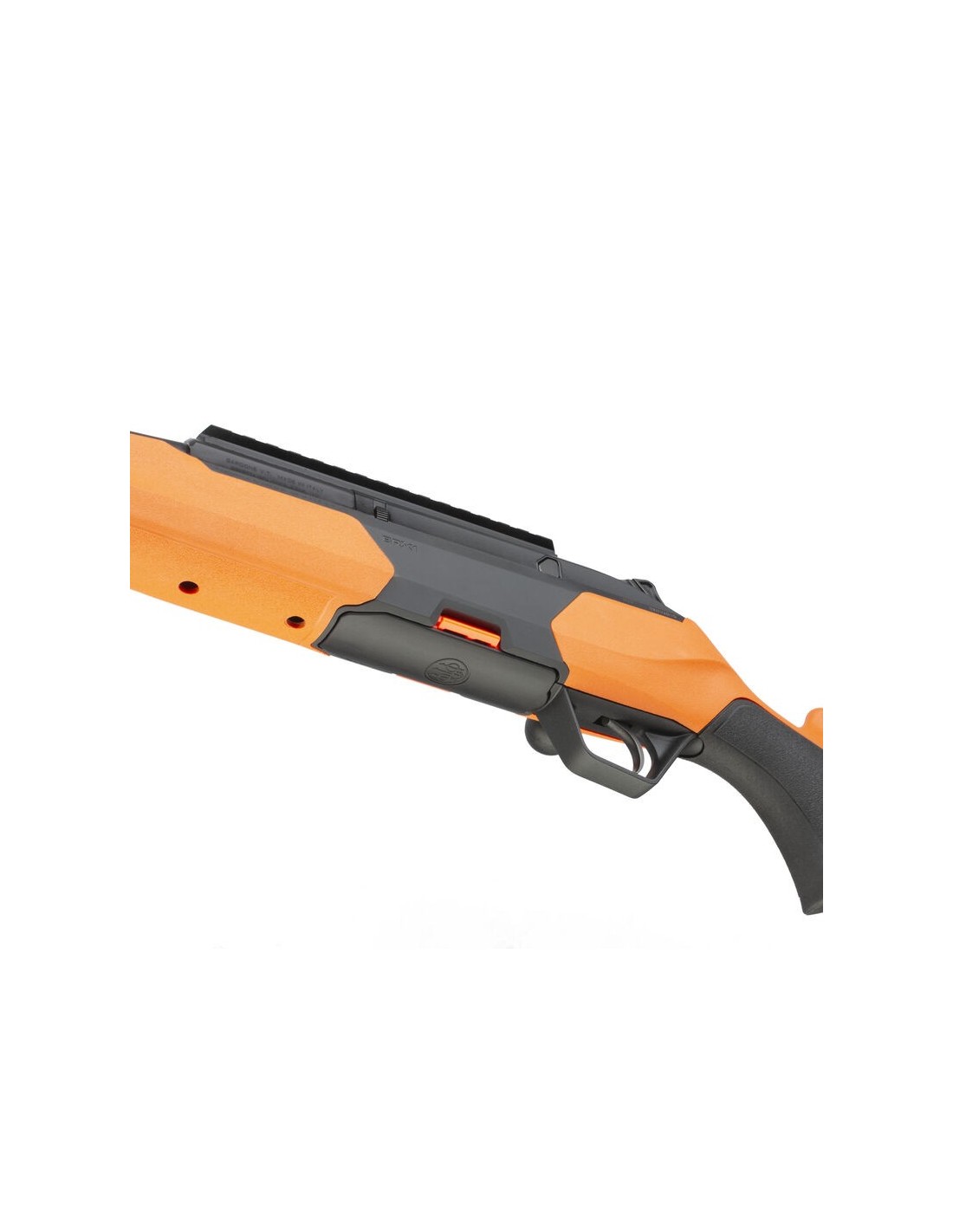 - Cargador enrasado y extraíble de polímero naranja de alta visibilidad, con capacidad para 5 balas (incluso para calibre magnum) y doble botón de liberación