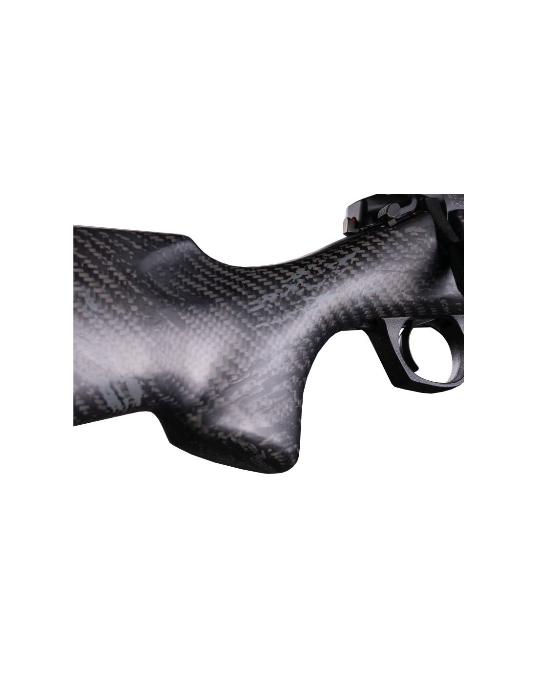 El CIMA CF es extremadamente ligero gracias a su culata RTM de fibra de carbono, con apenas 500 gramos de peso, combinada con un cañón Bergara CURE también de fibra de carbono y un mini chasis de encame en carbono SMC. Todo está pensado para reducir el peso sin comprometer la resistencia ni el rendimiento.