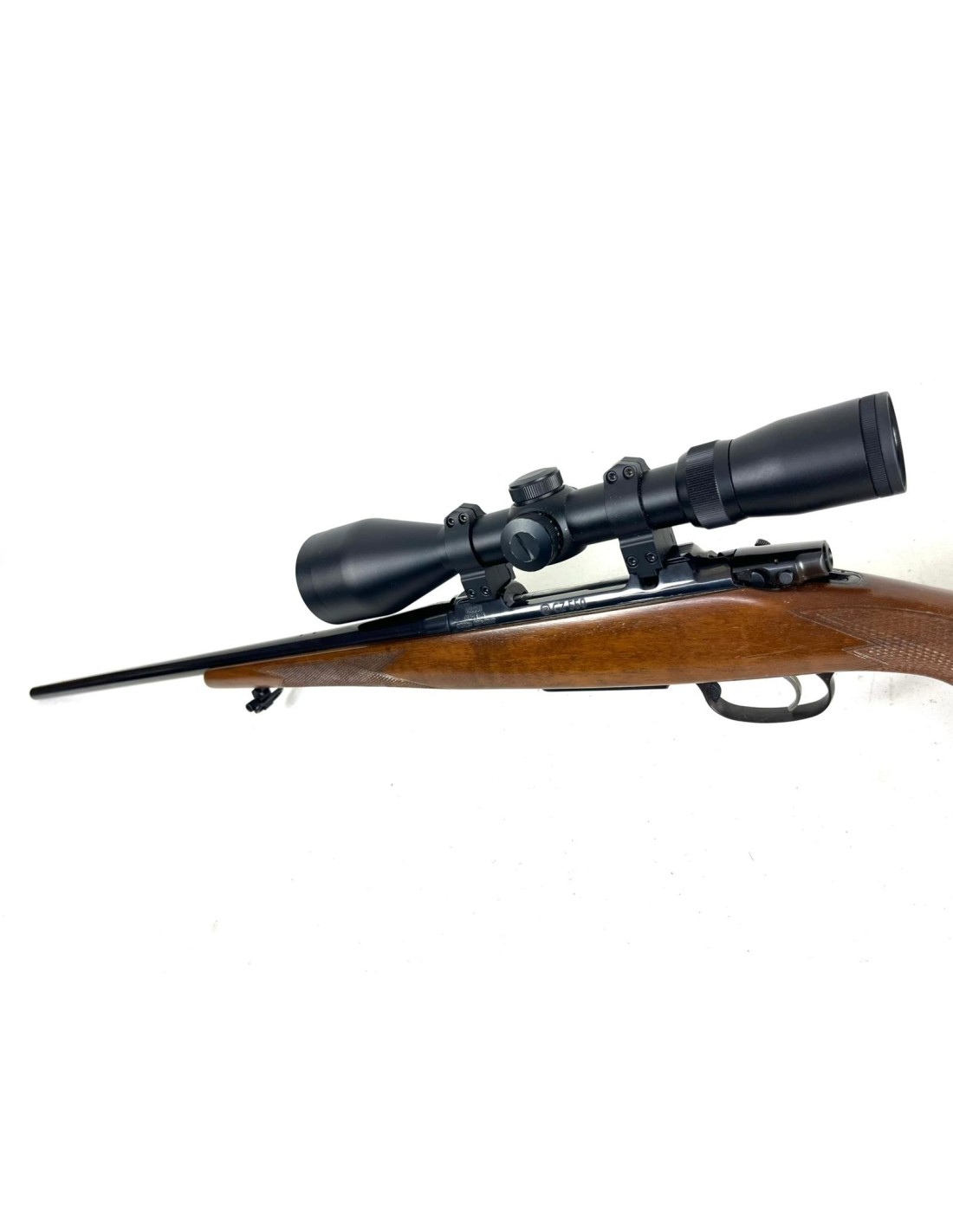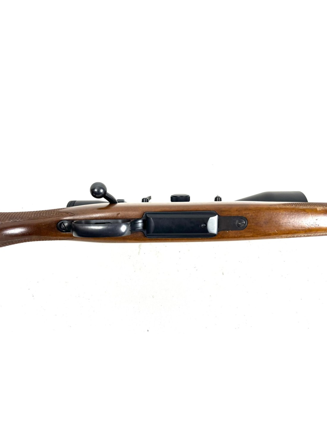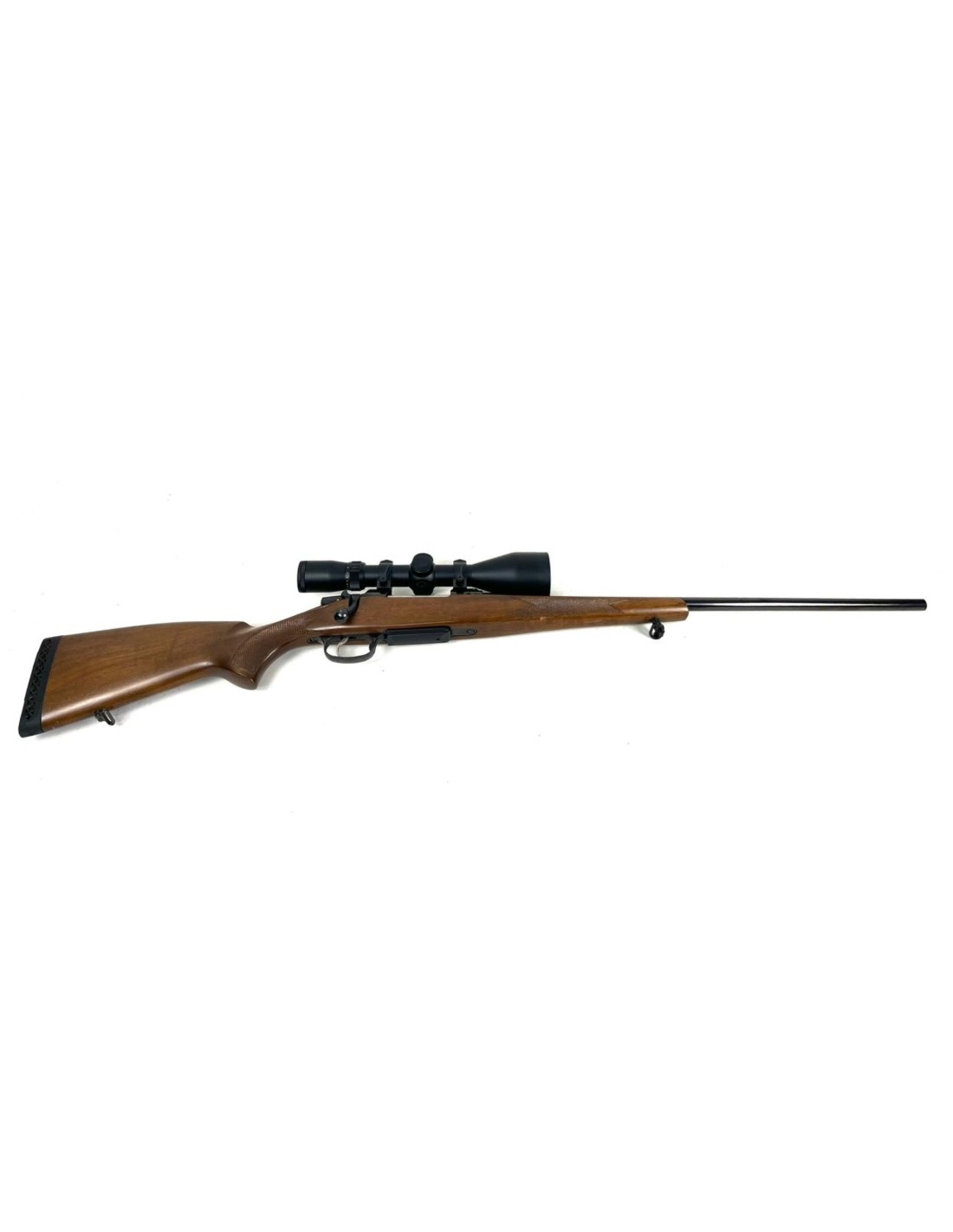Se ofrece rifle de cerrojo CZ 550 en calibre .243 Winchester, un modelo reconocido por su precisión, suavidad de acción y fiabilidad. El arma se encuentra en muy buen estado, con un elegante acabado en madera que aporta un encare cómodo y tradicional.