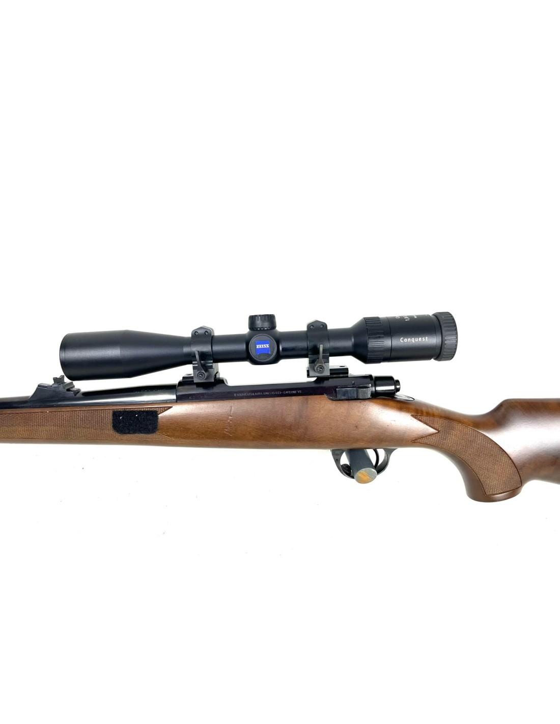 El rifle se entrega con un visor Zeiss Conquest 1.8-5.5x38, una óptica de alta calidad, reconocida por su nitidez, luminosidad y fiabilidad, perfecta para recechos y monterías. Este conjunto convierte al rifle en una opción lista para cazar, sin necesidad de inversión adicional.