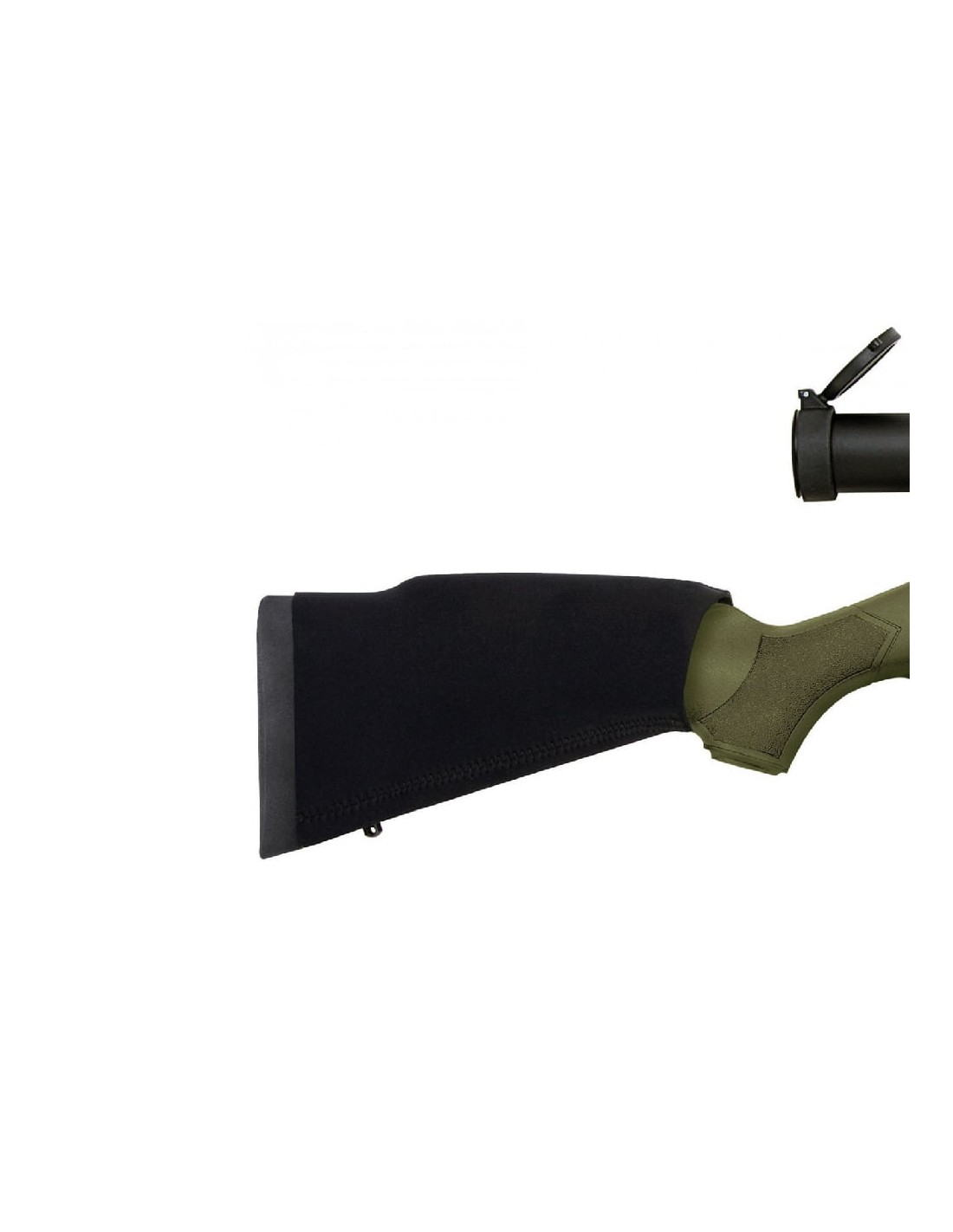 - Culata Sintética de Alta Rigidez: La culata sintética en acabado verde proporciona una alta rigidez y resistencia, con un picado antideslizante en el pistolete y el guardamanos para asegurar un agarre firme y cómodo durante el tiro.