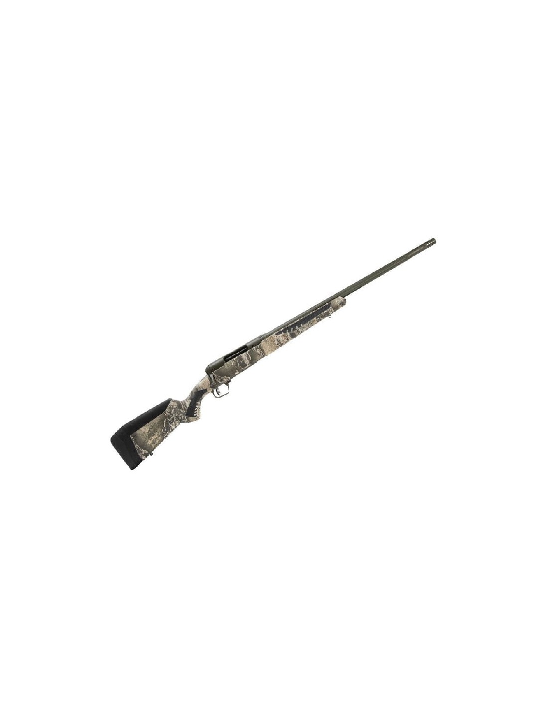 El cañón que monta el SAVAGE 110 Timberline es de contorno medio de 22” (559 mm.) acanalado, fabricado en acero al carbono y está estriado mediante la técnica de “button rifling”, de la que SAVAGE es un auténtico especialista, de ahí la afamada precisión de sus cañones. El cañón, armazón y demás partes principales vienen con un acabado Cerakote OD Verde que aporta una protección especial contra la corrosión. Posee cargador desmontable con capacidad para 4 balas.