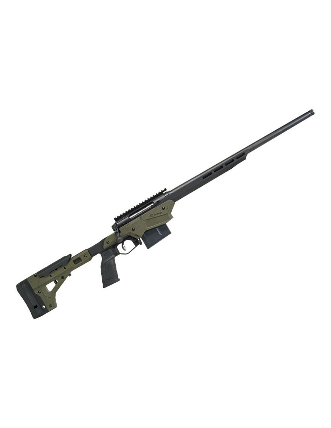 Su elemento más llamativo es el chasis de aluminio sobre el que va montado. Este es fruto de la colaboración con un tercero, concretamente con la prestigiosa casa canadiense Modular Driven Technologies (MDT). A primera vista, es innegable su parecido con el modelo más económico de la firma, el ORYX. Aunque se trata de un modelo exclusivo para SAVAGE, pero es clara su influencia en el desarrollo para la firma estadounidense. Su principal ventaja es el aporte de rigidez al conjunto, lo que obviamente se traduce en una mejora de la precisión. Todo ello sin que el peso del conjunto exceda demasiado, ya que solo pesa 4,5 Kg, una buena cifra para un rifle de precisión que monta un cañón pesado.