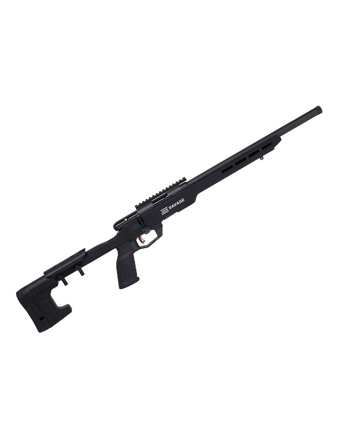 La acción es sencilla, con un cerrojo cuyo acerrojado es un poco menos de 90°, este tiene un solo tetón de bloqueo trasero, que bloquea la acción detrás del eje y la cabeza del cerrojo que gira libremente. Como en el resto de la gama de rifles SAVAGE la unión entre el cañón y la acción se realiza mediante una tuerca, lo que proporciona un “headspace” preciso.