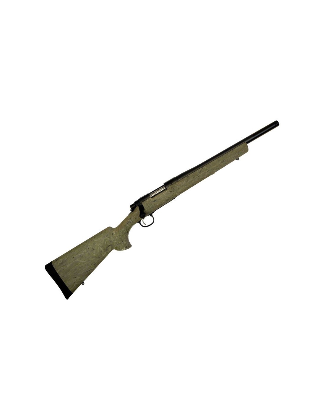 - Cañón pesado de acero al carbono de 16.5” (42 cm.) y estriado 5R, roscado con cubre rosca (paso de hilo 5/8""-24 UNEF).