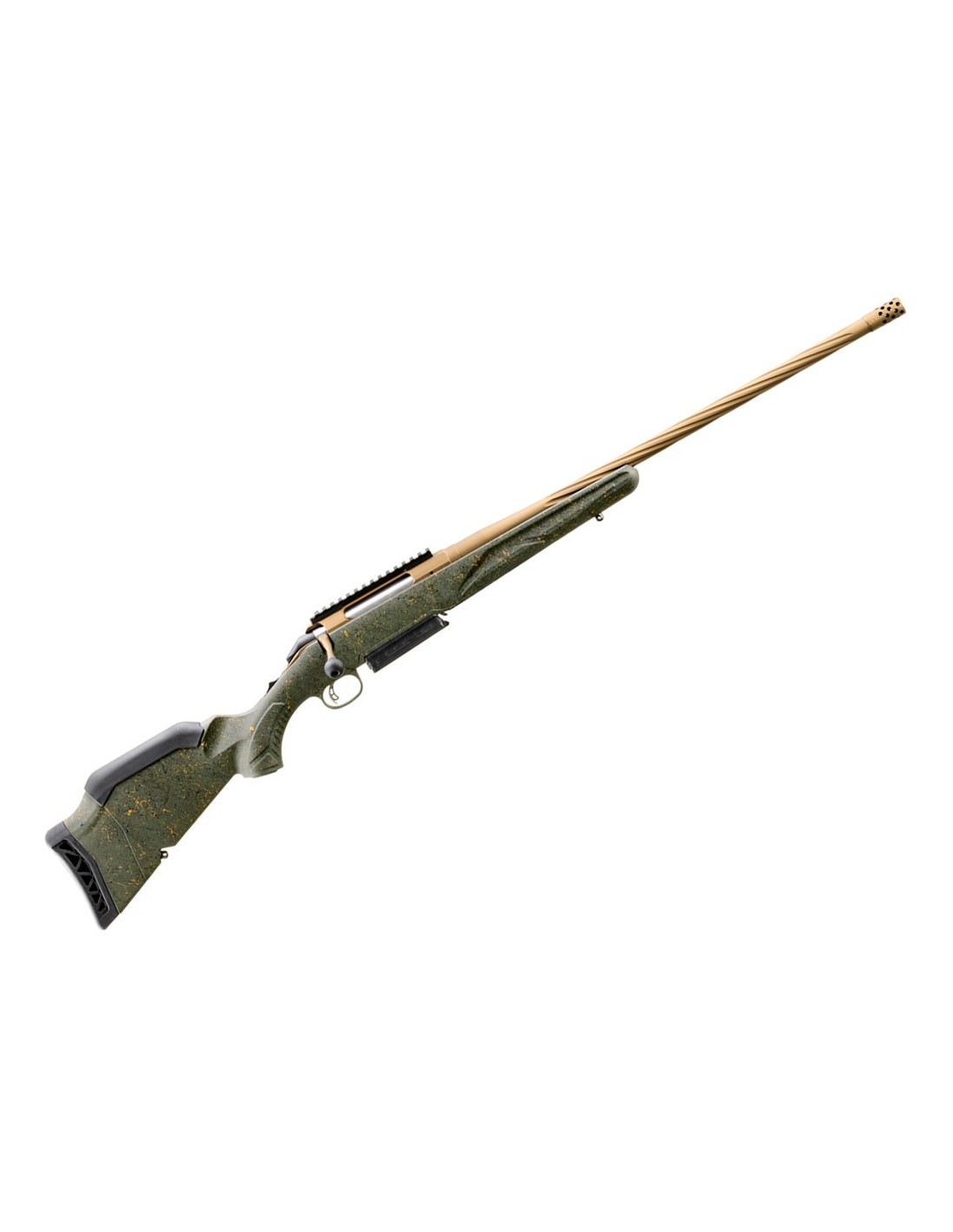 Los modelos estándar de Generación II Predator cuentan con una acción y cañón en acabado Cerakote™ bronce quemado duradero y una culata sintética en color verde oscuro texturizada con salpicaduras negras y grises para un excelente agarre y control del arma. El cañón de 22"" (558mm.) de contorno medio, forjado y martilleado en frío, presenta profundas estrías en espiral, lo que mejora el equilibrio del rifle sin sacrificar la rigidez o la precisión. Viene con un freno de boca radial instalado de fábrica.