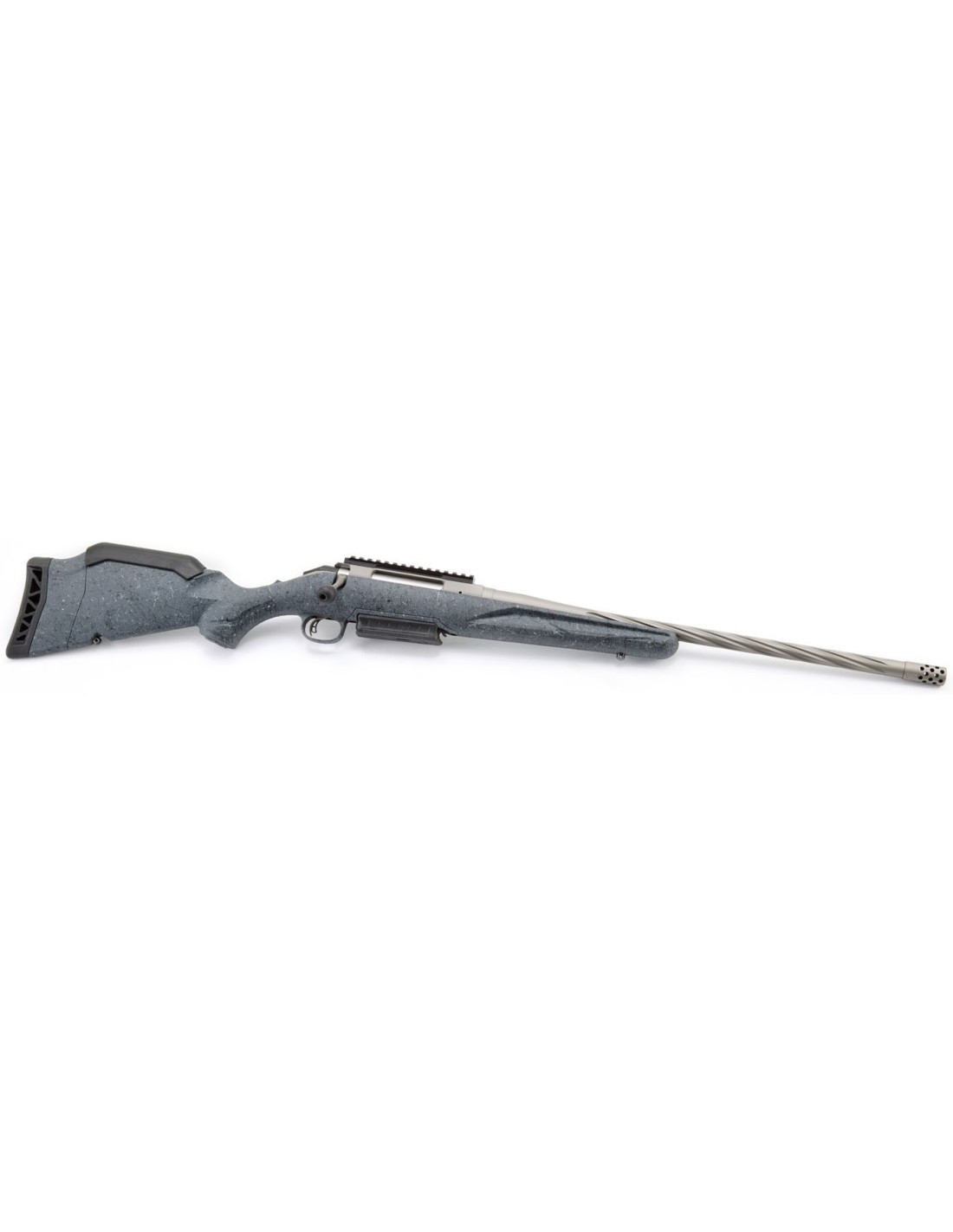 Los modelos estándar de Generación II cuentan con una acción y cañón en acabado Cerakote™ gris metalizado duradero y una culata sintética en color gris oscuro texturizada con salpicaduras negras y grises para un excelente agarre y control del arma. El cañón de 20"" de contorno medio, forjado y martilleado en frío, presenta profundas estrías en espiral, lo que mejora el equilibrio del rifle sin sacrificar la rigidez o la precisión. Viene con un freno de boca radial instalado de fábrica.