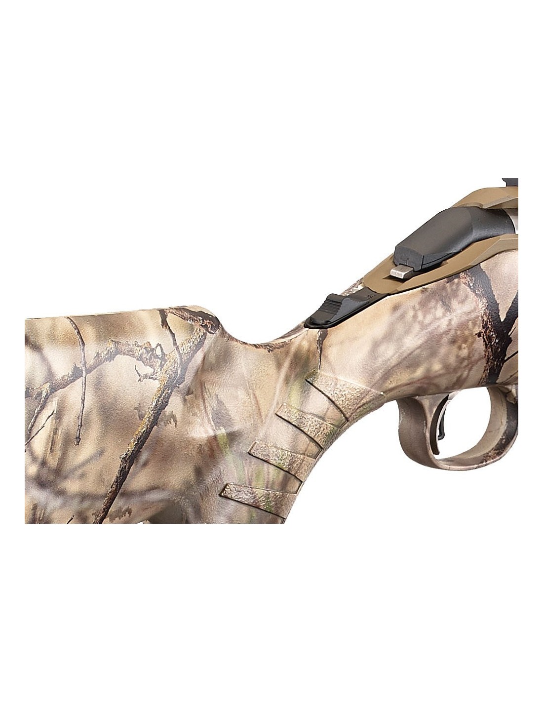 - Culata sintética ergonómica y ligera en acabado camuflaje, diseñada para un manejo rápido y fácil, combina un aspecto clásico con un contorno de guardamano moderno y con texturas antideslizantes para un agarre perfecto.