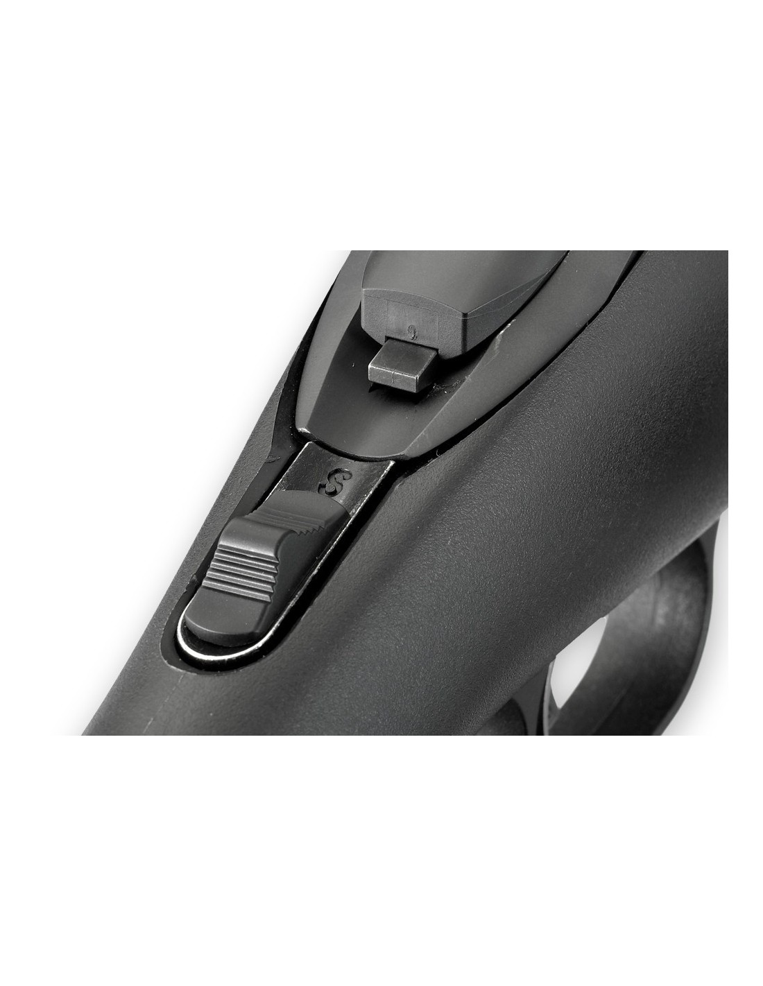 - Seguro ambidiestro visible en empuñadura, accesible y de fácil accionamiento que proporciona una seguridad instantánea.
