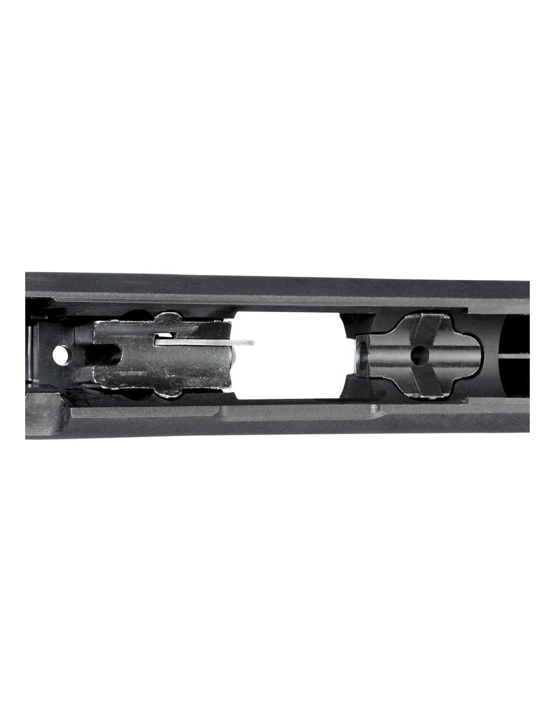 - Un recorrido del cerrojo de 60° proporciona un amplio espacio libre para el visor y el mecanismo de liberación del cerrojo, fácil de usar y montado en el armazón, permite quitar el cerrojo fácilmente sin necesidad de apretar el gatillo, una característica de seguridad única entre las carabinas de cerrojo.