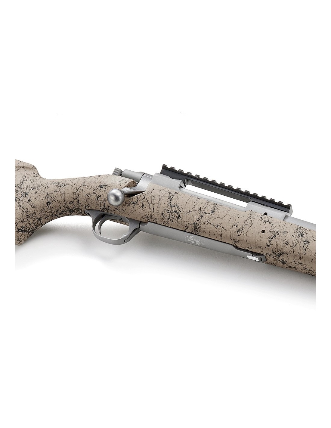- Carril Picatinny de 20 MOA asegurado con cuatro tornillos 8-40, instalado de serie en el sistema integrado de montaje para monturas patentado por Ruger, mecanizado directamente en la acción de acero inoxidable.