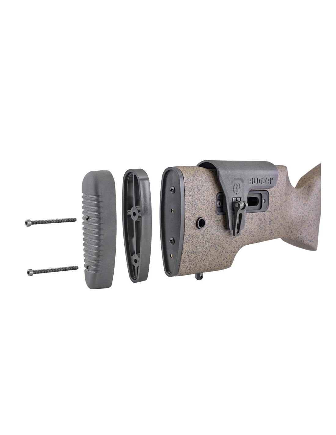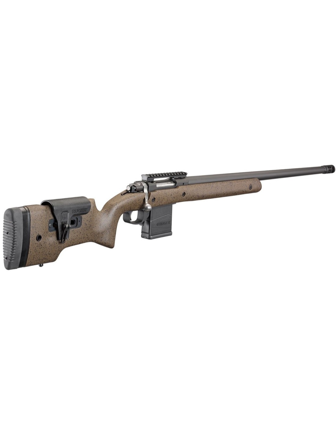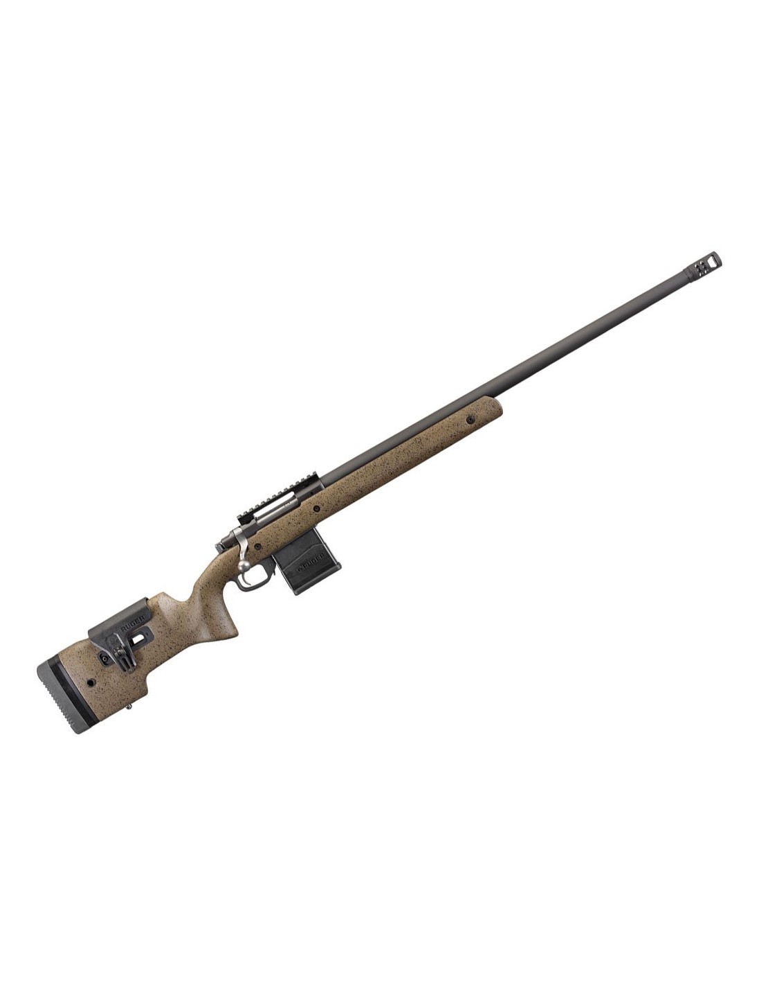 - Freno de boca hibrido Ruger Precision® para reducir eficazmente el retroceso a la vez que minimiza el ruido y la explosión a los costados del tirador (paso de hilo 5/8""-24).