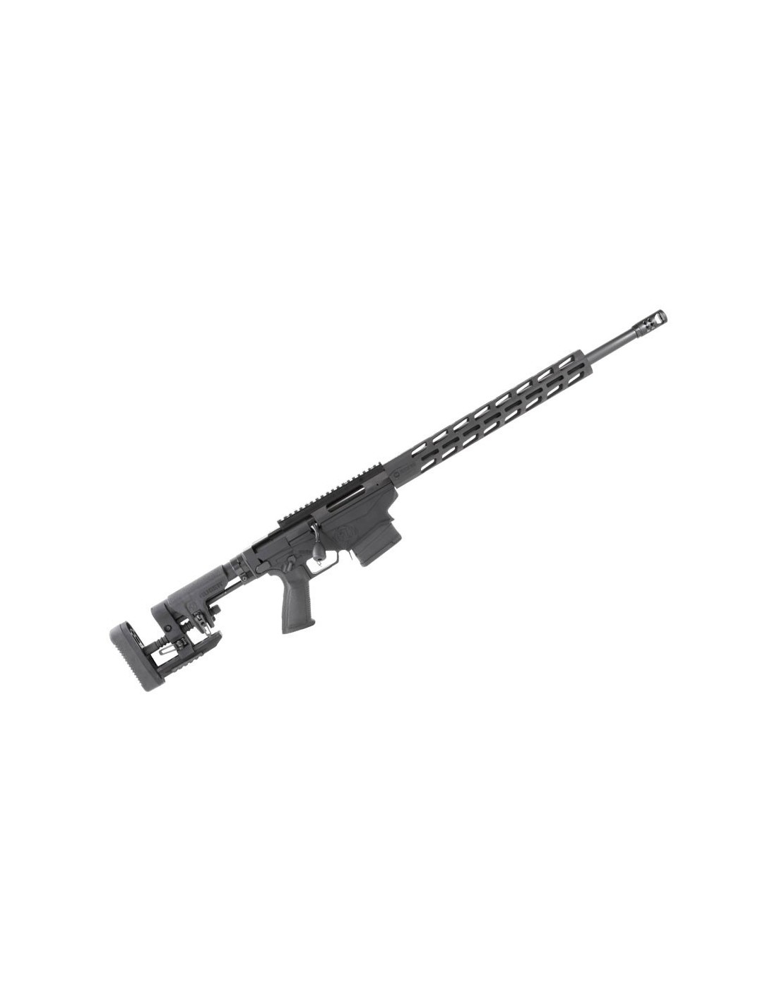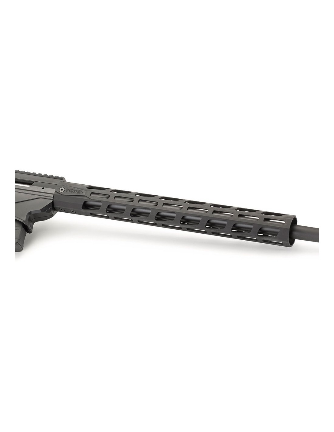 El Ruger Precision trae guardamanos flotante de 38 cm. de largo, es de aluminio anodizado con revestimiento endurecido negro y cuenta con ranuras Magpul M-LOK® en los cuatro lados para mejorar el espacio libre para visores tácticos y facilitar el montaje de carriles y accesorios compatibles con M-LOK®.