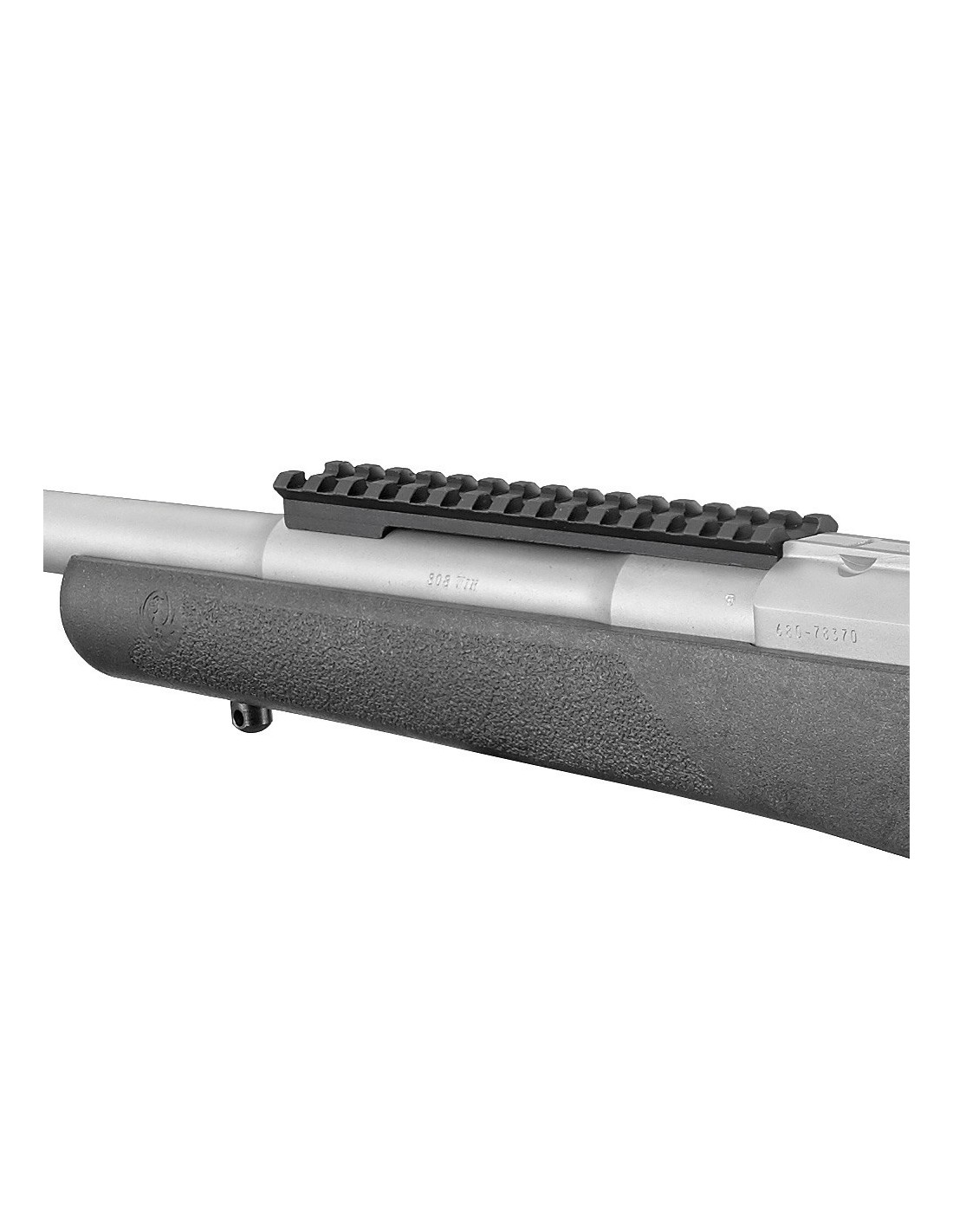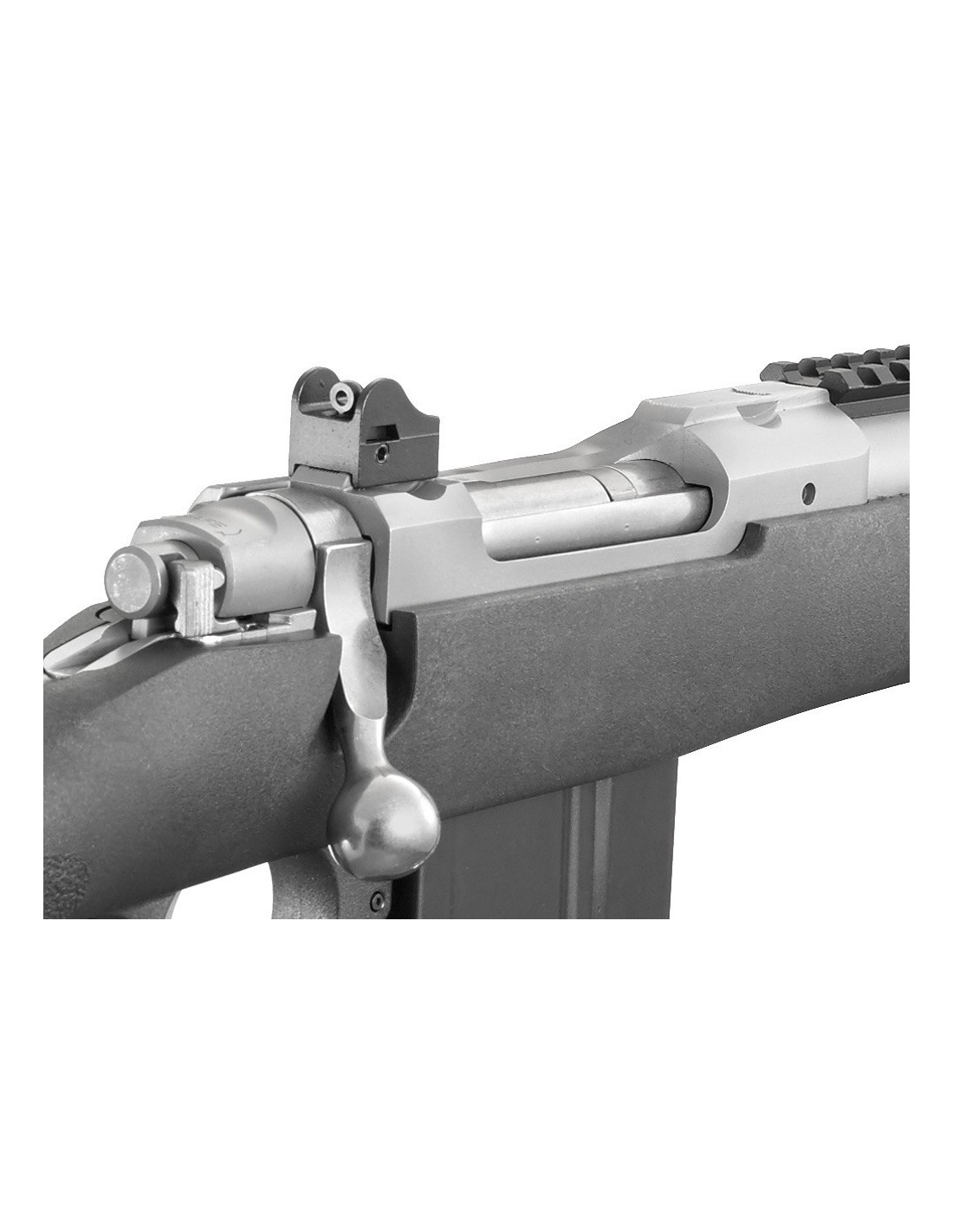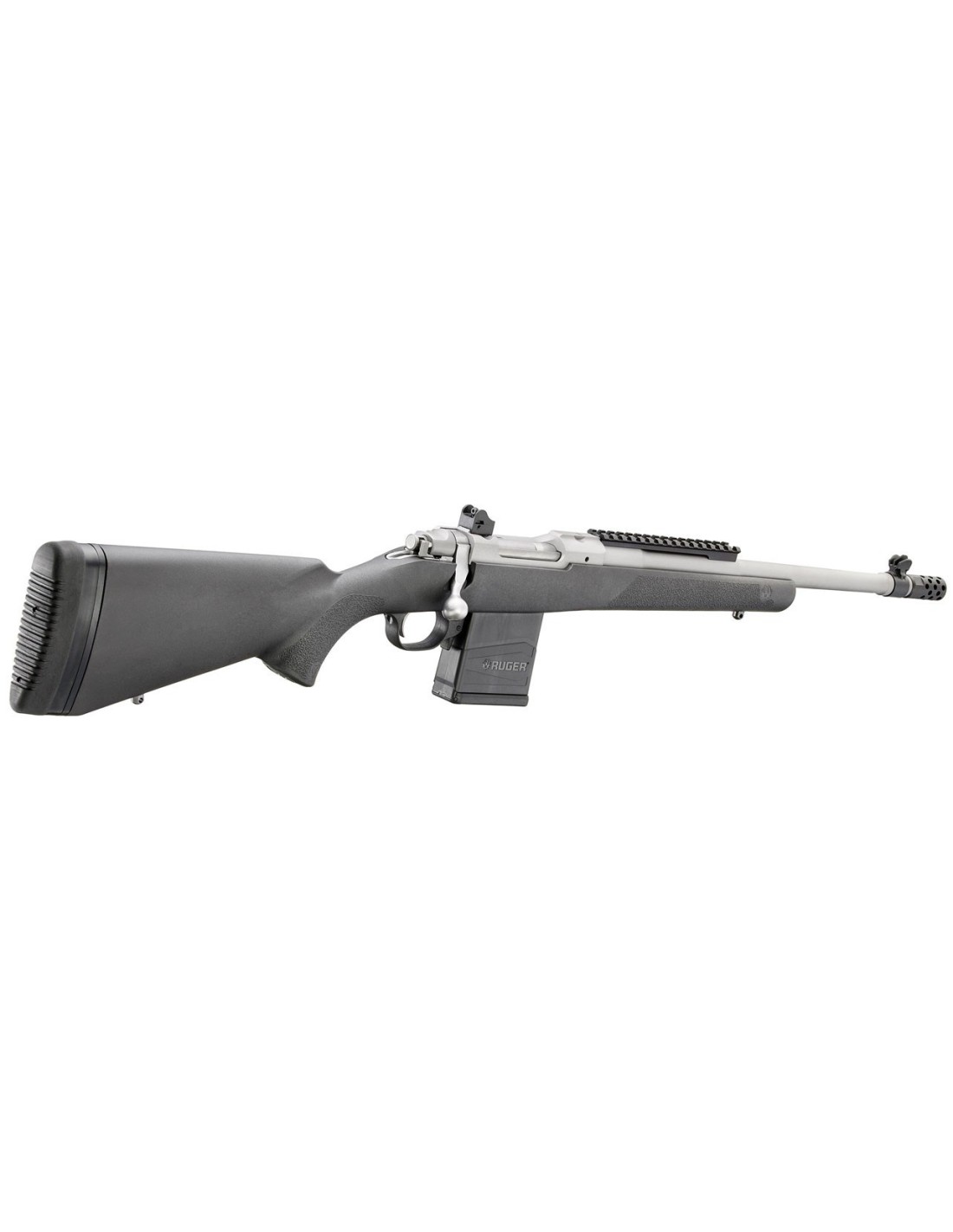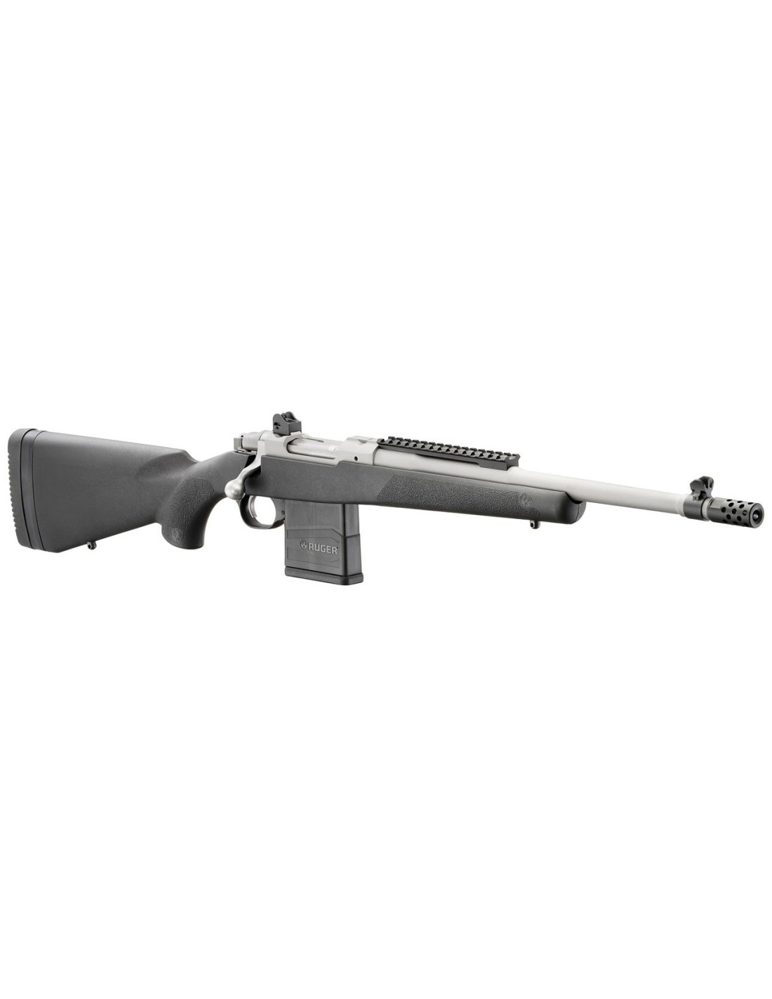 El rifle Ruger Gunsite Scout vine con cañón de contorno medio, forjado y martilleado en frío con un punto de mira de poste antideslumbrante protegido y un alza trasera abierta ajustable tipo “ghost ring” montada en el armazón. Un carril Picatinny montado en la parte delantera ofrece opciones para montar una variedad de ópticas, , miras réflex y puntos rojos para apuntar con ""ambos ojos abiertos"" y posibilitar una adquisición de objetivos súper rápida.