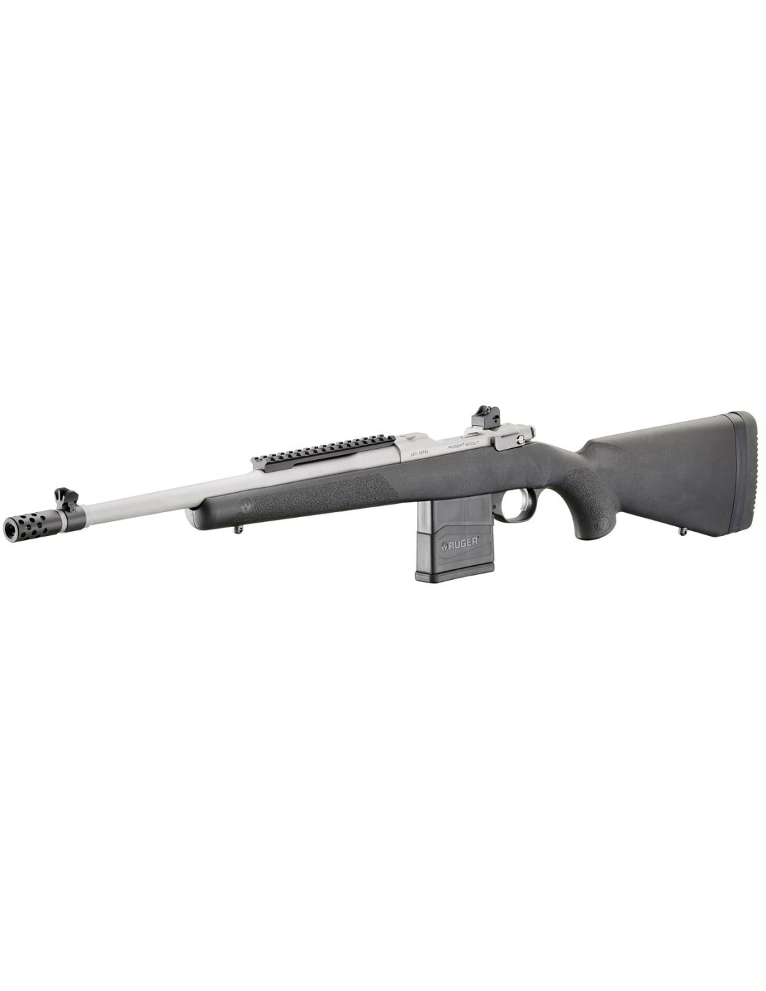 Desarrollado en conjunto con Gunsite Academy, la instalación de entrenamiento de armas de fuego privada más antigua de Estados Unidos, el rifle Scout es un rifle relativamente ligero y polivalente, acorde con el concepto de rifle Scout del coronel Jeff Cooper. Basado en la familia Ruger M77®, el rifle Scout tiene características M77 como el sistema de alimentación controlada de cartuchos, tipo Mauser y montajes de mira integrales y se suministra con un cargador metálico desmontable de 10 balas. El guardamonte del rifle y el hueco del cargador están formados con nailon reforzado con fibra de vidrio. El mecanismo de liberación del cargador es una paleta de empuje hacia adelante estilo Mini-14 justo delante del guardamonte.