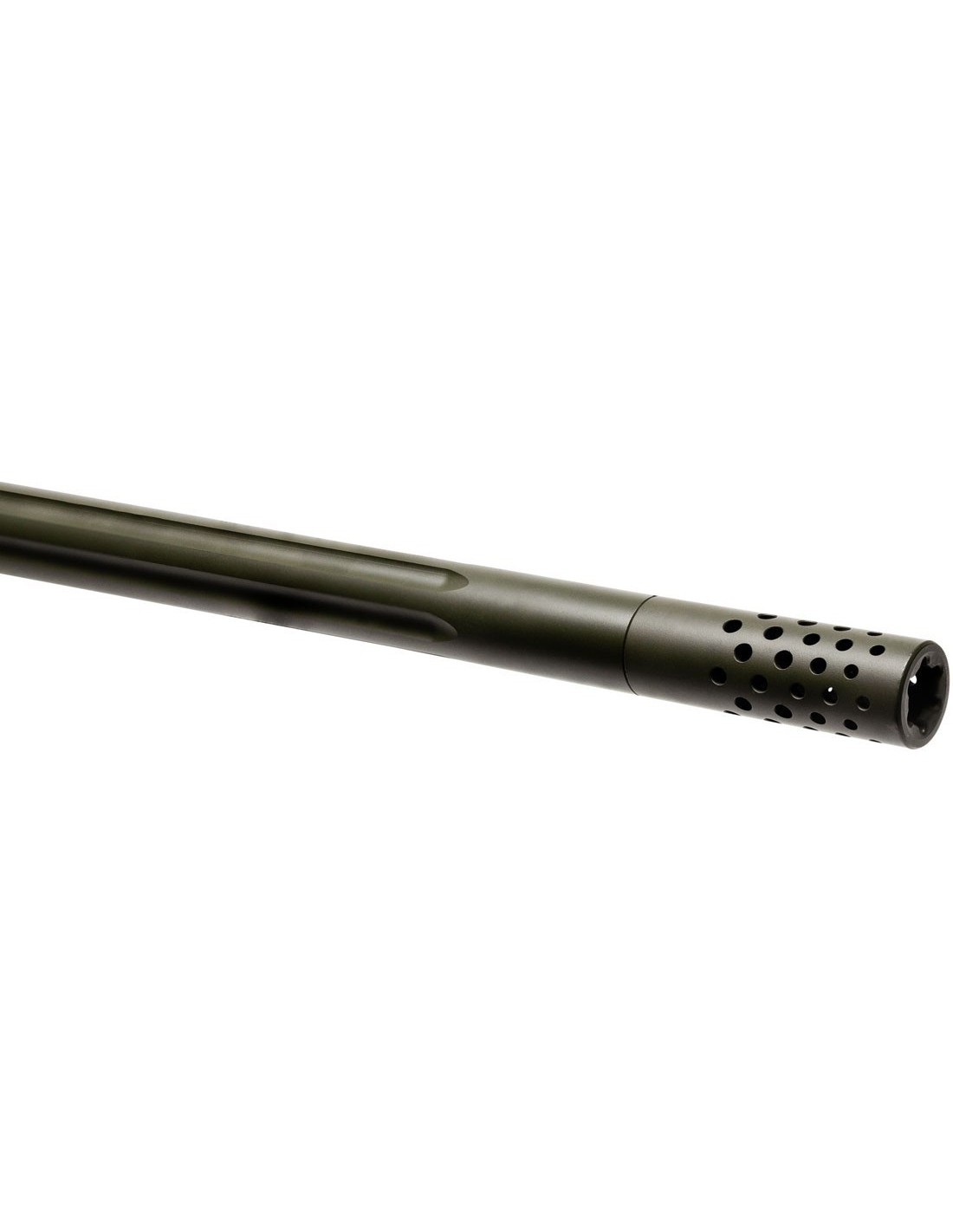 - Cañón acanalado de acero al carbono estriado “button-rifled” de 24” (609 mm.) roscado (paso de hilo 5/8-24”) y con freno de boca de serie..
