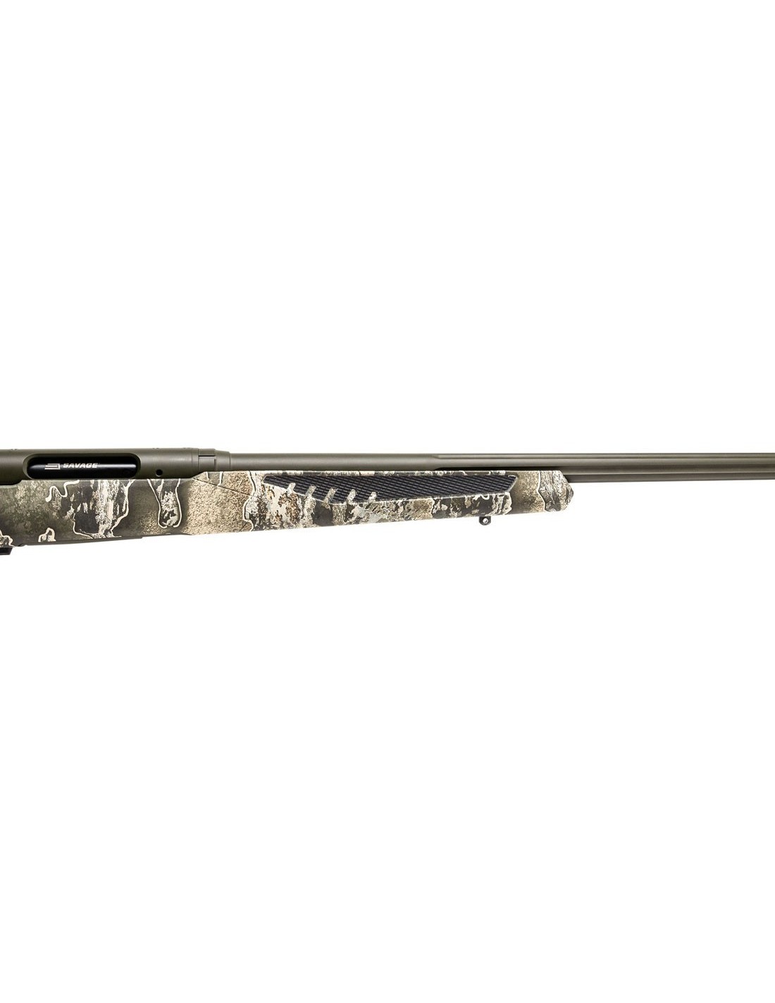 El cañón que monta el SAVAGE 110 Timberline es de contorno medio de 24” (609 mm.) acanalado, fabricado en acero al carbono y está estriado mediante la técnica de “button rifling”, de la que SAVAGE es un auténtico especialista, de ahí la afamada precisión de sus cañones. El cañón, armazón y demás partes principales vienen con un acabado Cerakote OD Verde que aporta una protección especial contra la corrosión. Posee cargador desmontable con capacidad para 3 balas.