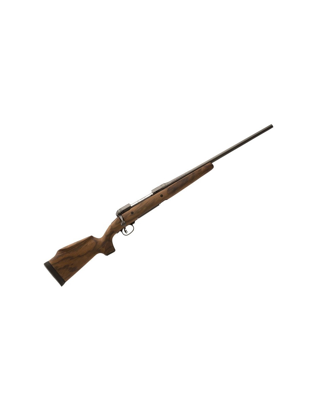 La acción en este caso está aligerada, en aras de esa reducción de peso. Por lo demás cuenta con el conocido un cerrojo de dos tetones de cabeza flotante, que permite un ajuste preciso durante el bloqueo y haciendo que la cara del cerrojo tenga contacto completo con toda la cabeza del cartucho. Otro aspecto más que hace que ayuda a que estos rifles sean tan precisos.