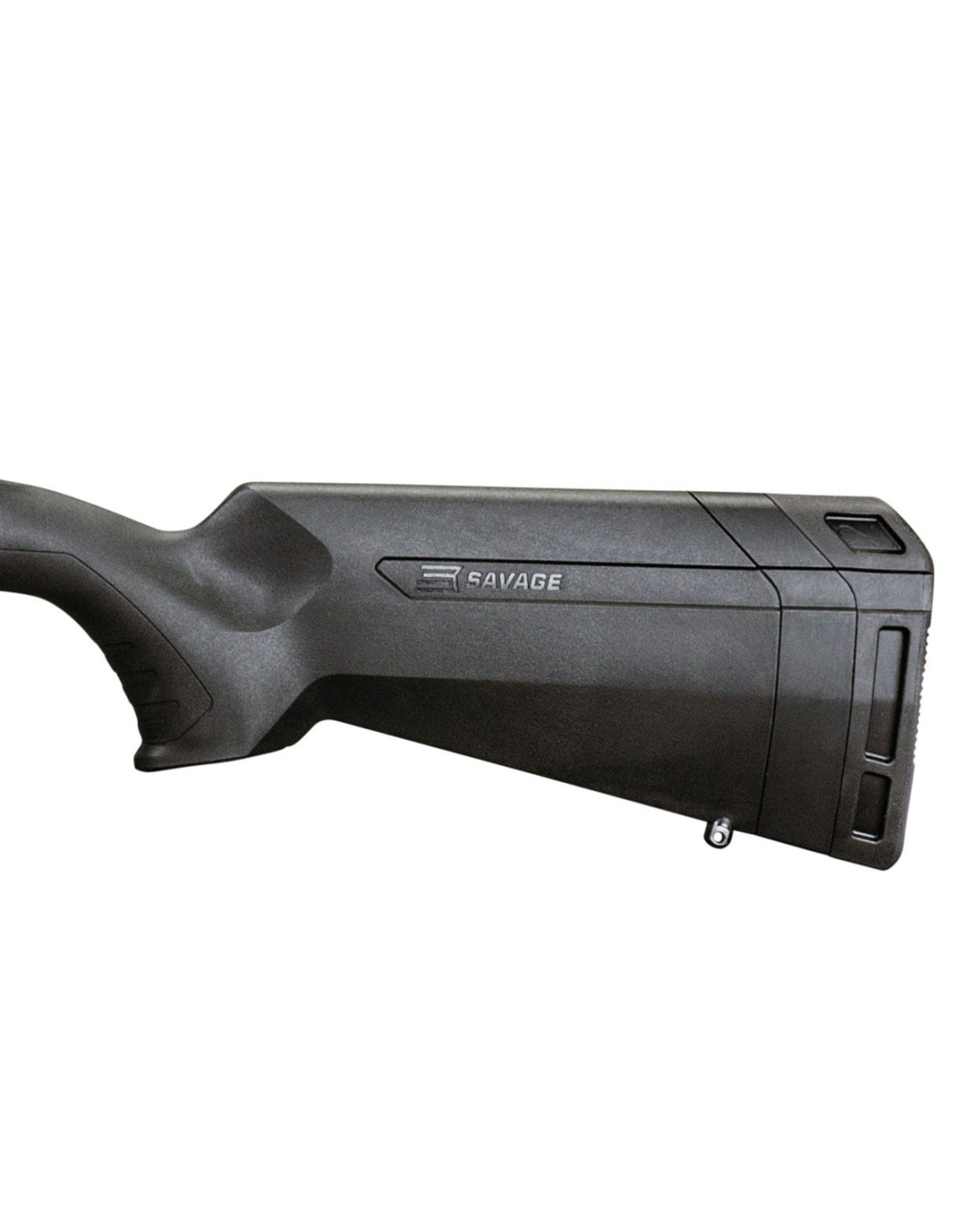 En cuanto a la acción, esta es la tradicional de SAVAGE, de formas redondeadas y que ya solo a la vista muestra su robustez. Está mecanizada a partir de una barra redonda y tiene una ventana de expulsión lo suficientemente amplia, para proporcionar una buena rigidez sin entorpecer la alimentación a través de ella y la expulsión de vainas percutidas. Aunque también tiene otras virtudes, frente a diseños de techo abierto, como preservar la entrada de partículas o suciedad en la acción.