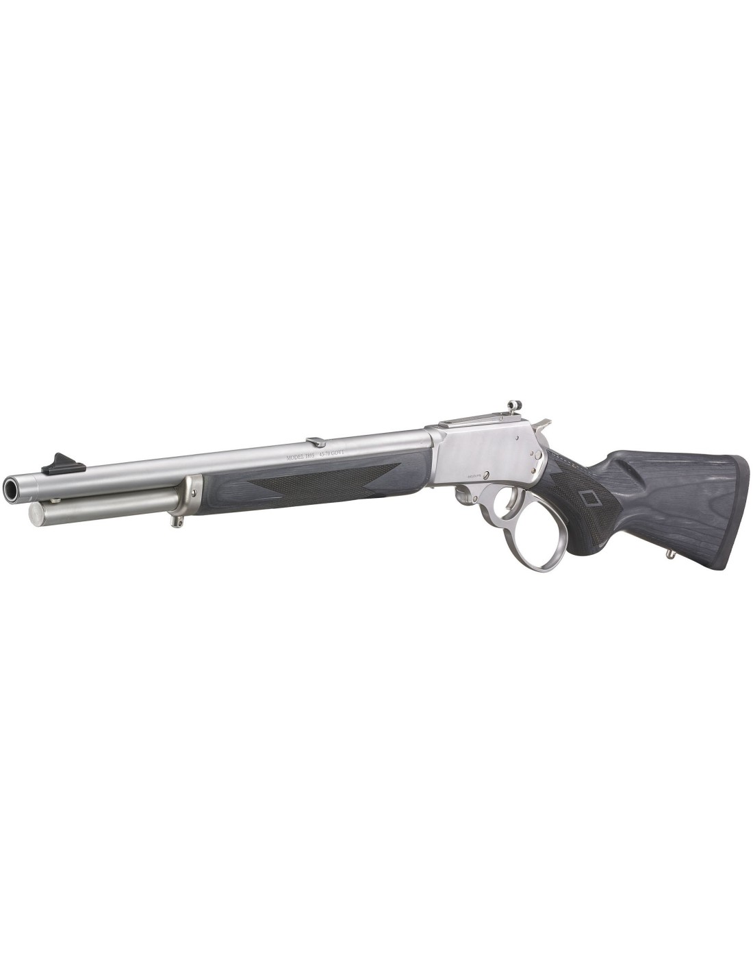 - El cargador tubular, con puerta de carga ubicada en el armazón, tiene capacidad para 6 balas del calibre .45-70 Government.