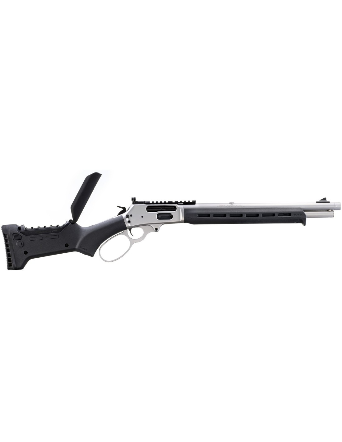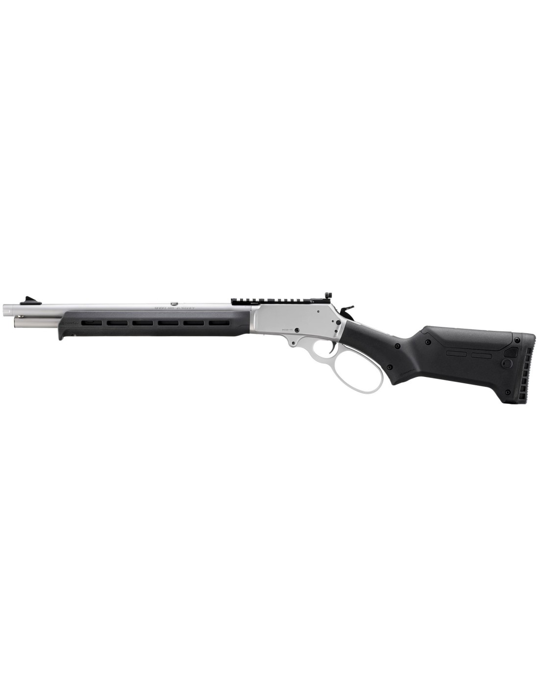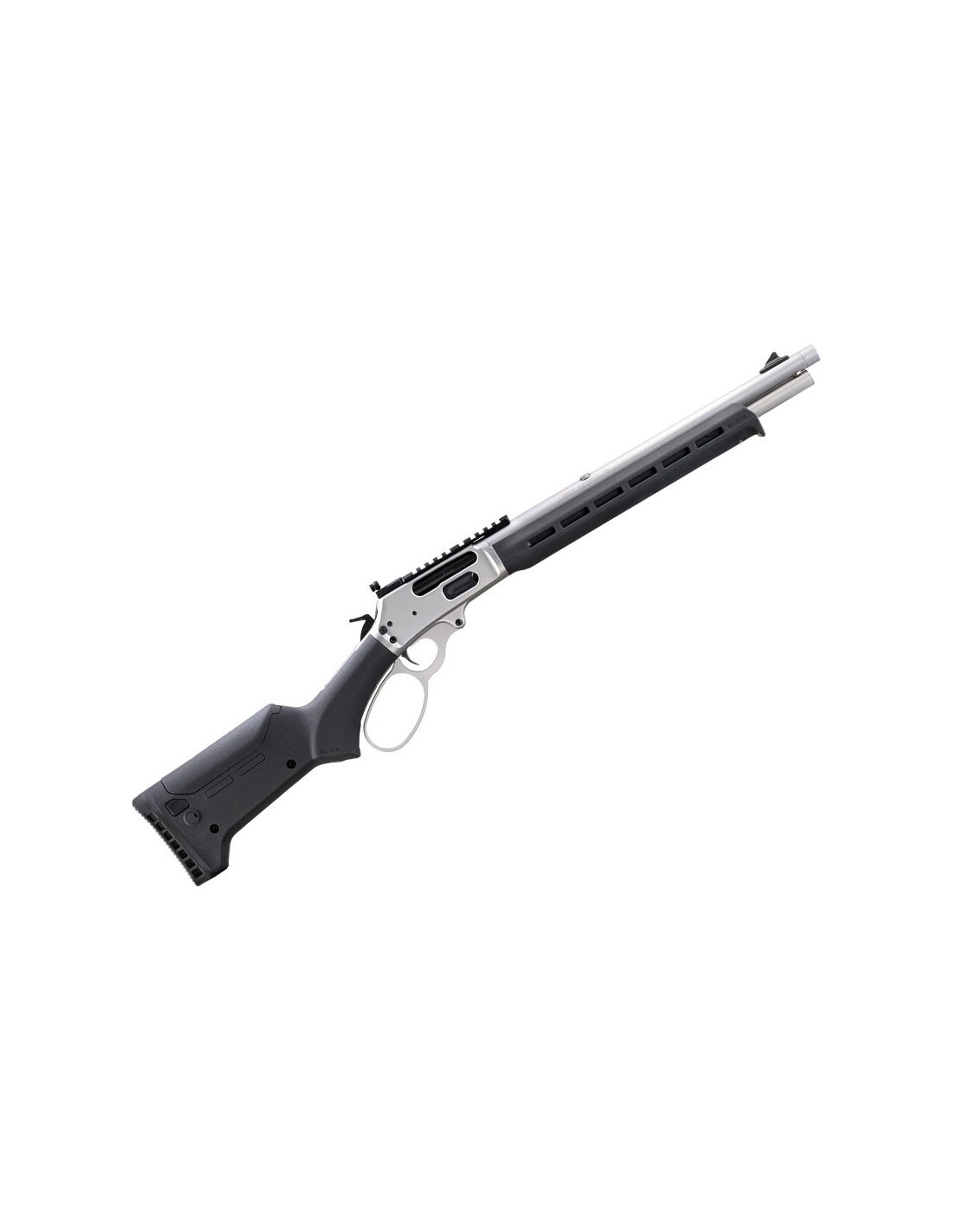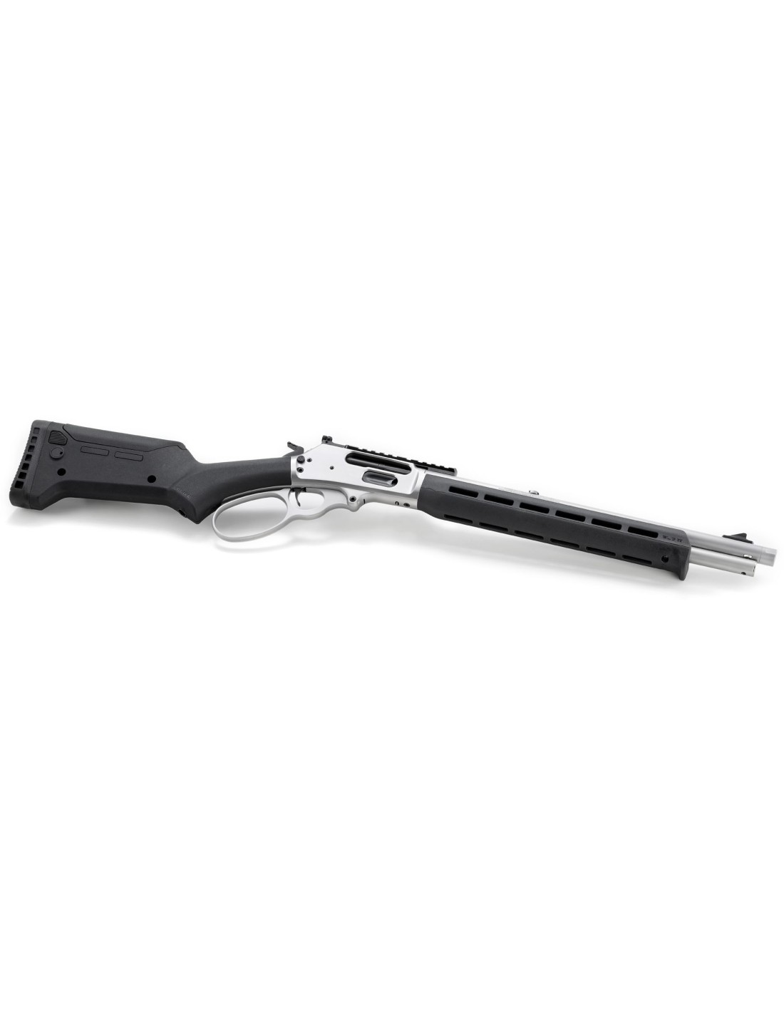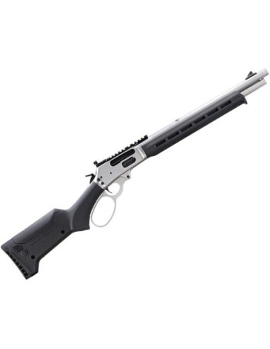 Basado en la misma plataforma que el Marlin 1895 SBL, el Marlin 1895 Trapper cuenta con un cañón más corto y maniobrable de 16.17"" (41 cm.) lo que le proporciona una longitud total de 33.25” (84,4 cm.). Viene en un acabado inoxidable satinado granallado para reducir el deslumbramiento. Está equipado con un cargador tubular que tiene capacidad para 5 balas, la culata sintética Magpul ELG y el gurdamanos con ranuras M-LOK® permiten montar una amplia variedad de accesorios. Utiliza un lazo sobredimensionado en la palanca de la casa Wild West Guns. Este tipo de lazo es ideal para poder operar el arma con guantes o para usuarios con manos muy grandes.
