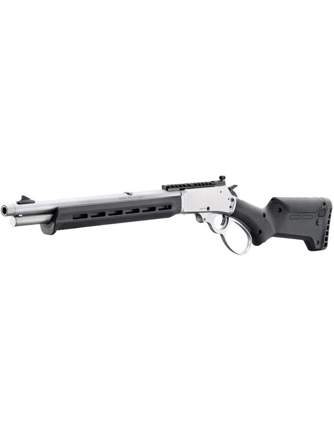 - El cargador tubular, con puerta de carga ubicada en el armazón, tiene capacidad para 6 balas del calibre .45-70 Government.