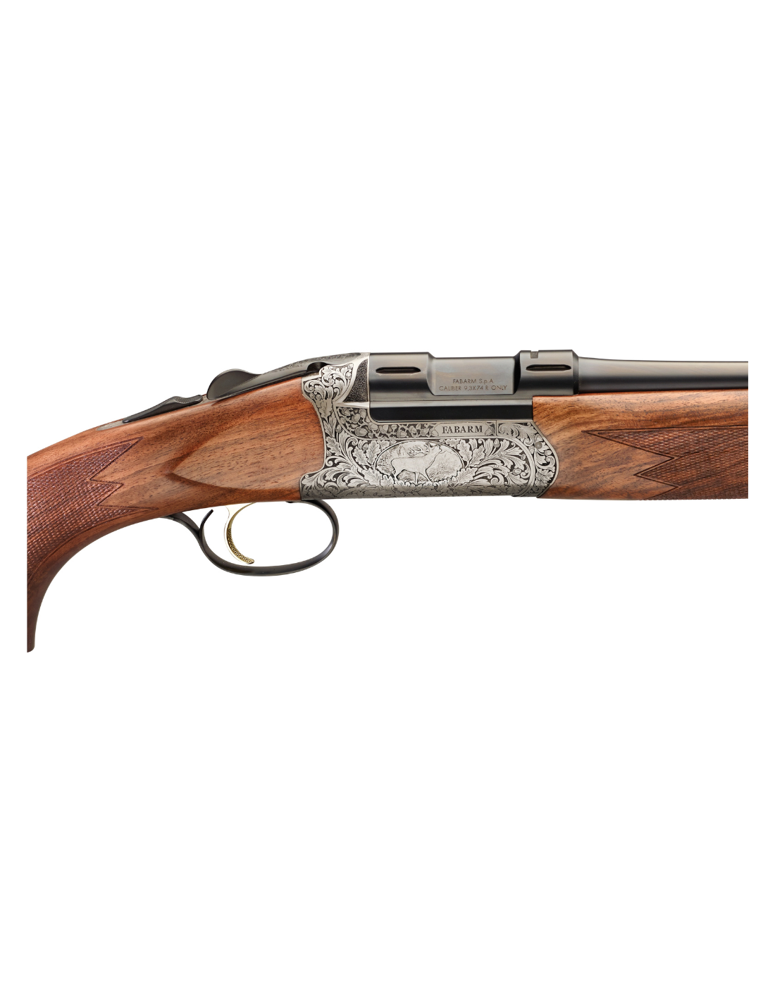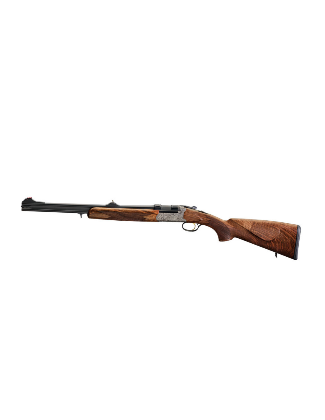 Rifle con báscula redondeada de acero forjado y elegantes grabados. Disponible en varios calibres. Se suministra en elegante estuche metálico