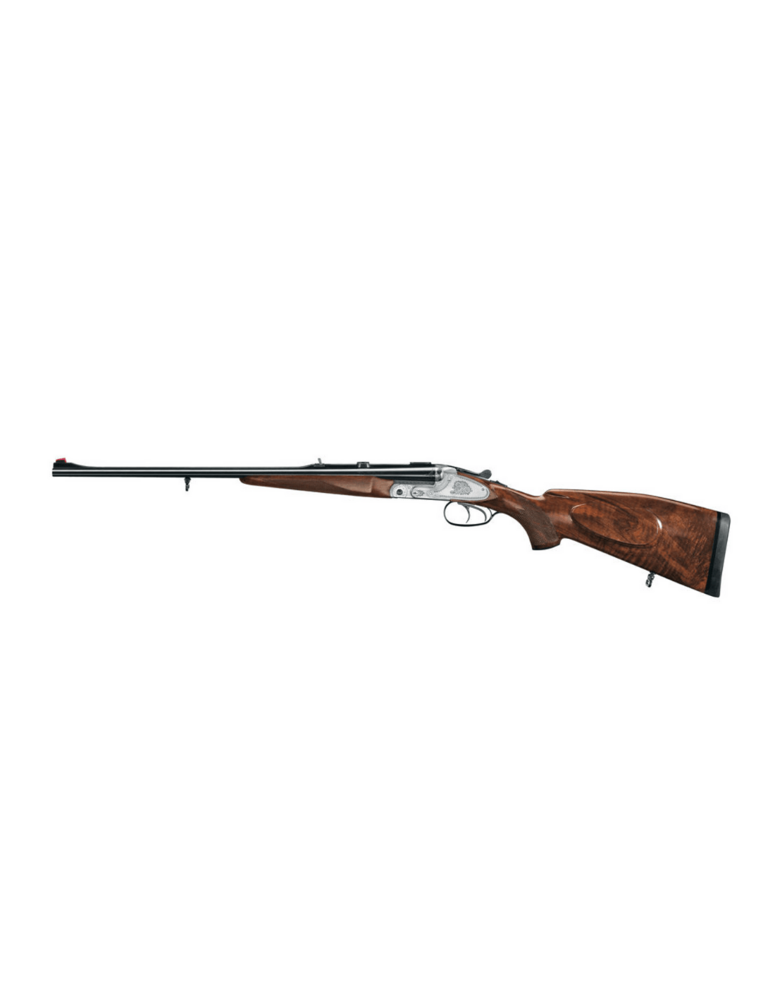 Versión con pletinas auténticas. Las chispas llevan muelle real tipo "V" lo que garantiza desarrollos cortos en el proceso de disparo. Las pletinas están ricamente grabadas por expertos artesanos con motivos de caza y motivos florales tipo arabescos. Las chispas pueden ser desmontadas de forma fácil para su limpieza. Muelles desmontable tipo "V". Báscula de acero. Cierre tipo Veerder. Doble disparador , el primero articulado. Pistolet. Carrillera. Cantonera de goma. . Largo total 102cm. Peso aproximado 3,4kgs. Maderas desde tipo 5. Calibres disponibles: 7x65R ; 30-06; 30R Blaser; 8x57IRS; 9,3x74R, otros calibres consultar