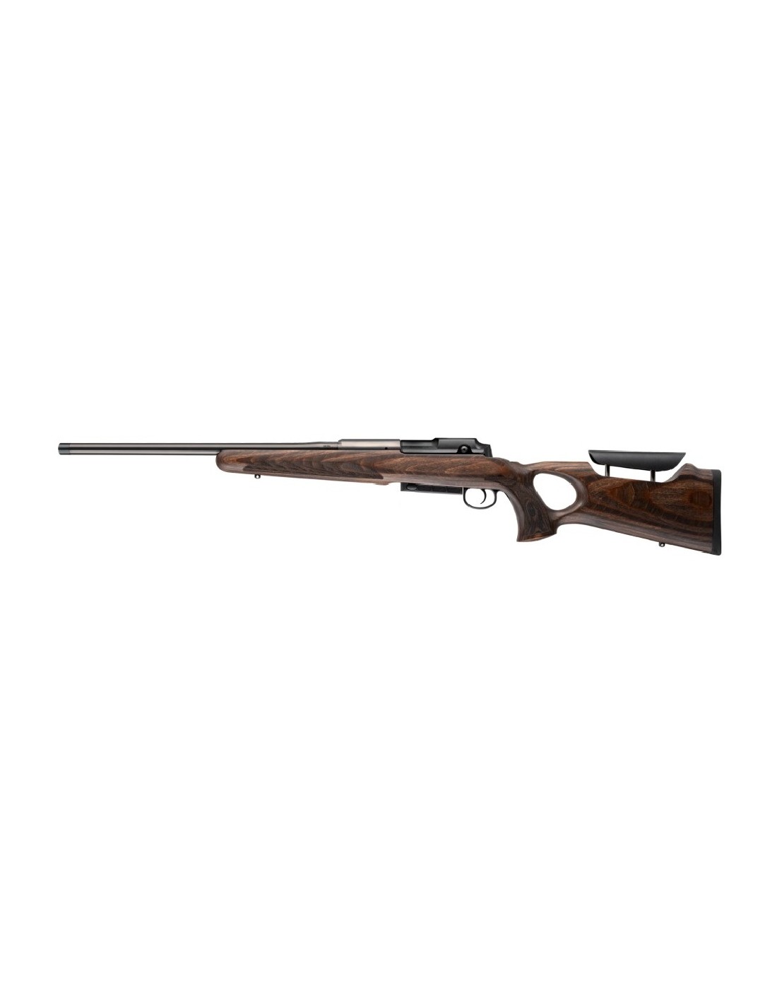La culata de madera laminada con orificio para el pulgar, ya popular en los modelos MAUSER 12 y MAUSER 18, también está disponible para el MAUSER 25. La culata del MAUSER 25 Max se caracteriza por su máxima estabilidad y una posición ergonómica para la mano. La culata, fabricada en madera de haya laminada con tratamiento especial, garantiza la máxima estabilidad y resistencia a la deformación en las condiciones climáticas más adversas.