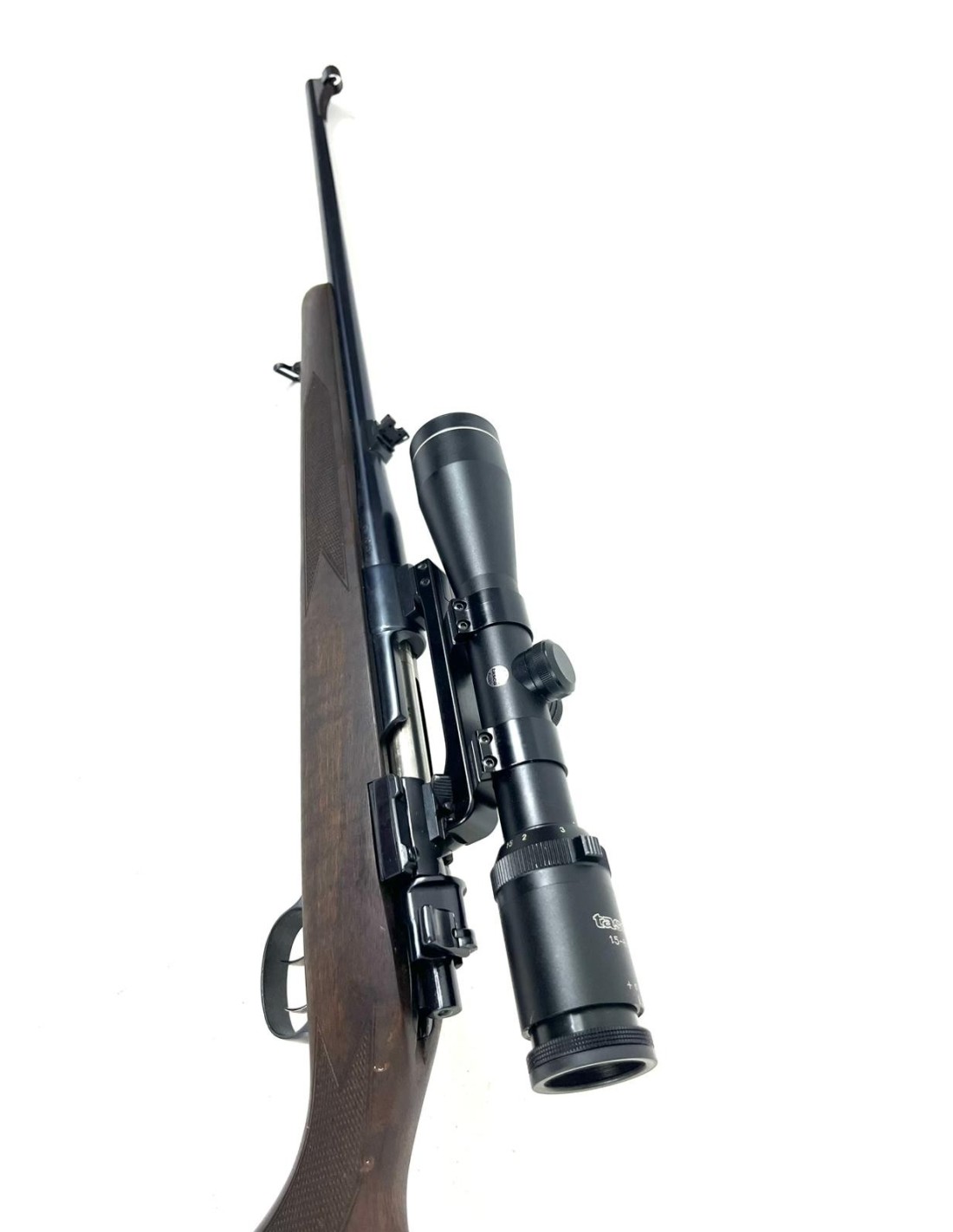 Rifle Mauser M98 en calibre .30-06, acción de cerrojo y acabado en madera que conserva el carácter clásico del modelo histórico. La unidad se encuentra en buen estado de conservación y ha sido revisada por nuestro maestro armero, garantizando seguridad, correcto cierre del cerrojo y funcionamiento mecánico fiable.
