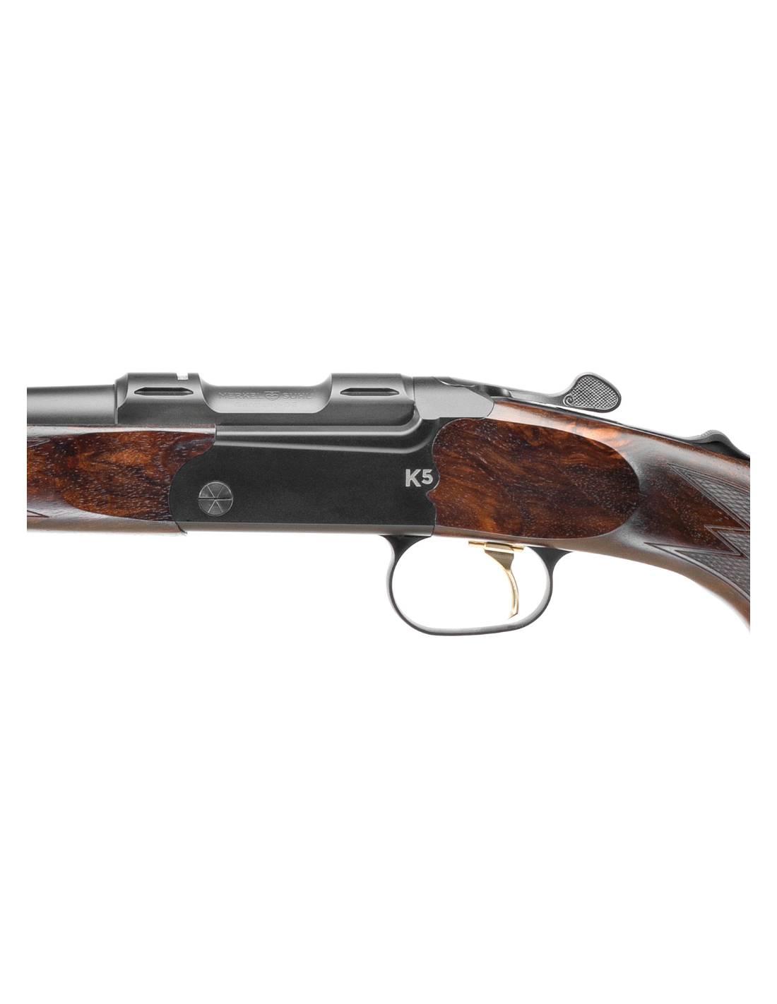 El rifle modelo K5 de Merkel es una verdadera obra maestra en el mundo de las armas de fuego. Diseñado con precisión y atención al detalle, este rifle combina un rendimiento excepcional con una estética impresionante. Uno de los aspectos más destacados de este rifle es su báscula negra con el logo K5, que le confiere un aspecto elegante y distintivo. La báscula negra del rifle de Merkel está finamente acabada, con un revestimiento que le otorga un aspecto oscuro y sofisticado. El logo K5, colocado con precisión en la báscula, es un símbolo de calidad y prestigio. Este detalle Resalta sobre el fondo negro, añadiendo un toque de lujo al rifle. Múltiple posibilidades , diversos cañones, y calibres , el rifle K5 de Merkel es el rifle que todo cazador sueña poseer.