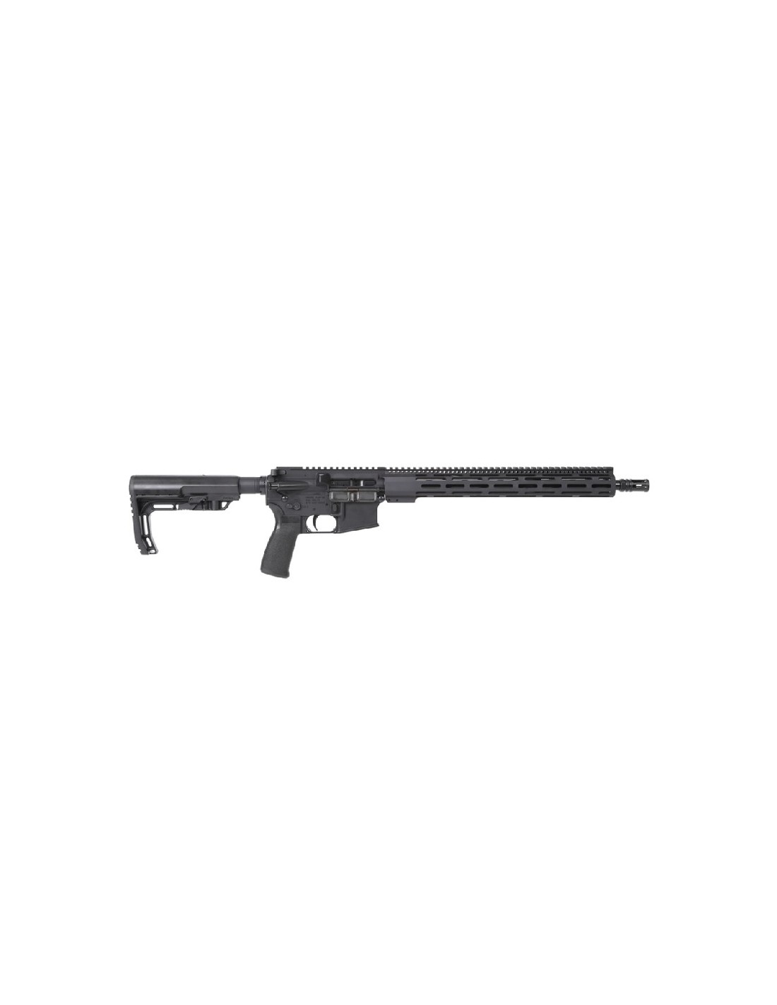 Radical FirearmsRifle Radical Firearms RF-15 calibre 300 AAC Blackout, cañón de 16" SOCOM con acabado Melonite y giro 1:7. Guardamanos M-Lok flotante de 15", receptores forjados 7075-T6 y culata MFT Minimalist ajustable. Sistema de gas medio y control de fuego ambidiestro MIL-STD. Incluye cargador de 30 balas.