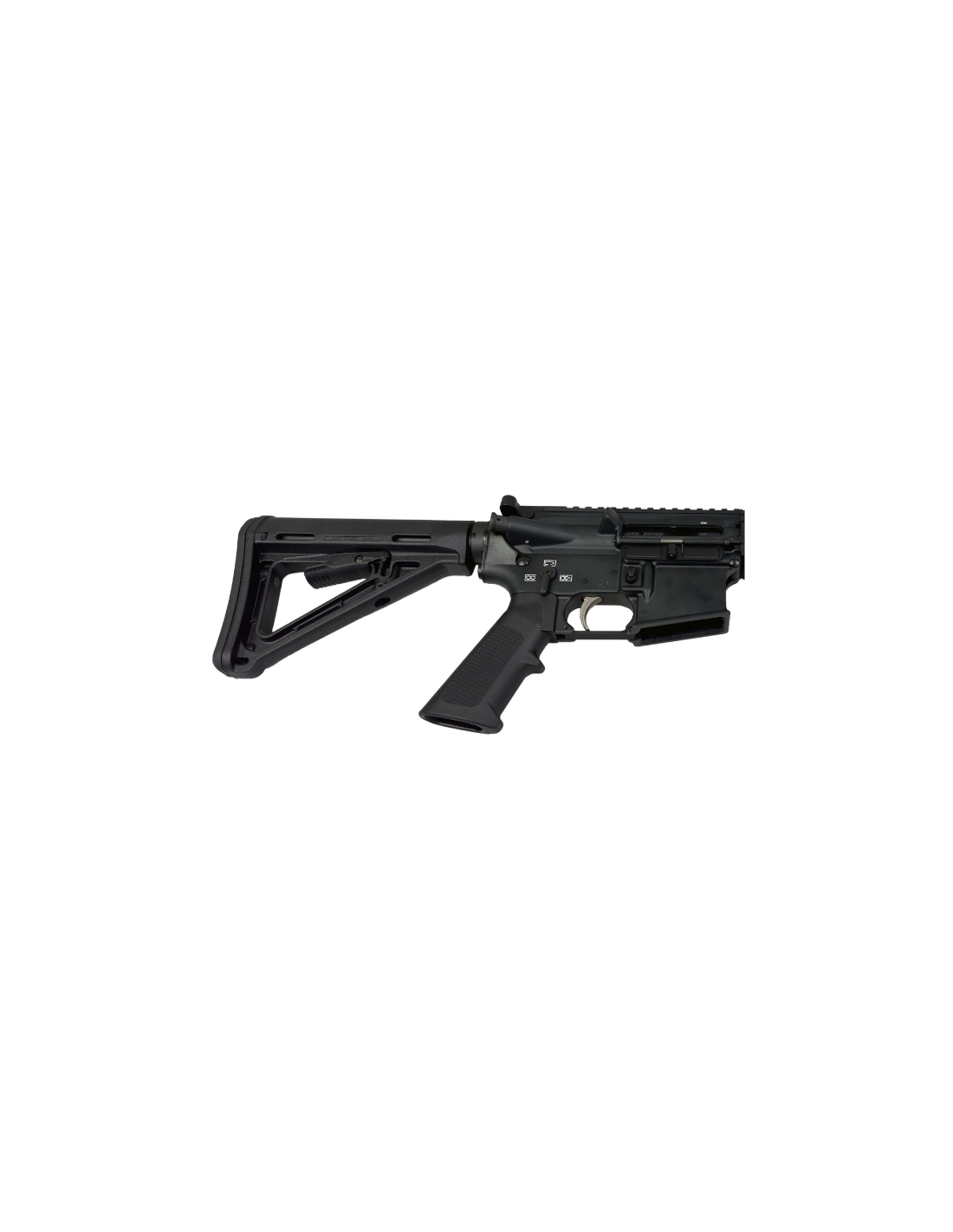 Guardamanos M-LOK, carril Picatinny full-length, miras abatibles y culata Magpul retráctil de 6 posiciones.